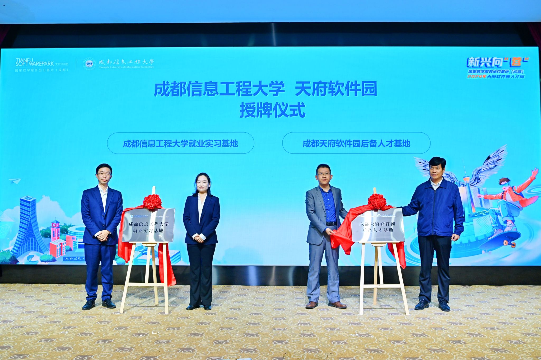 在授牌仪式上,学校招生就业处、科技处负责同志与天府软件园负责人共同为“悟空官方网站就业实习基地”和“成都天府软件园后备人才基地”揭牌。