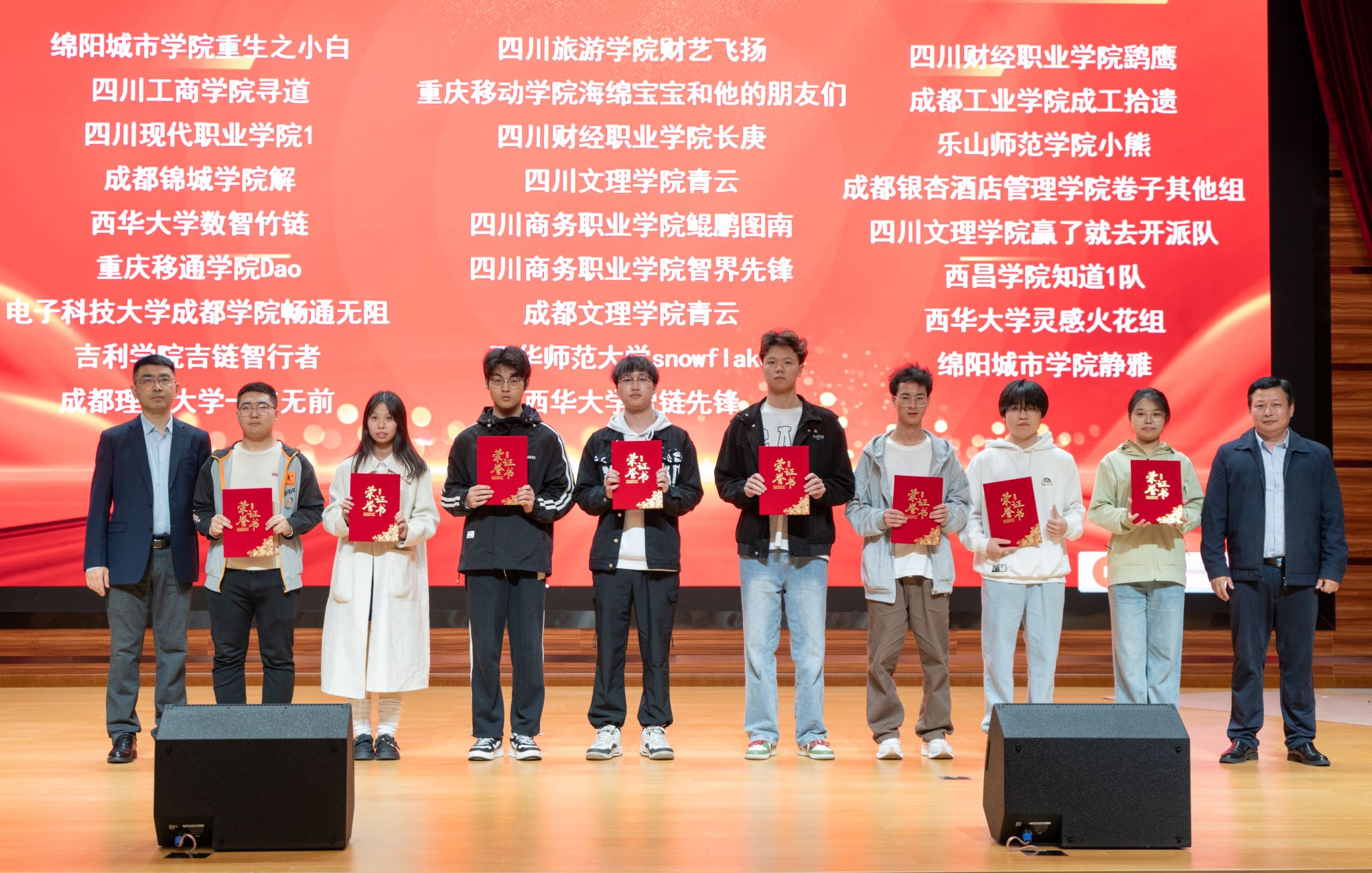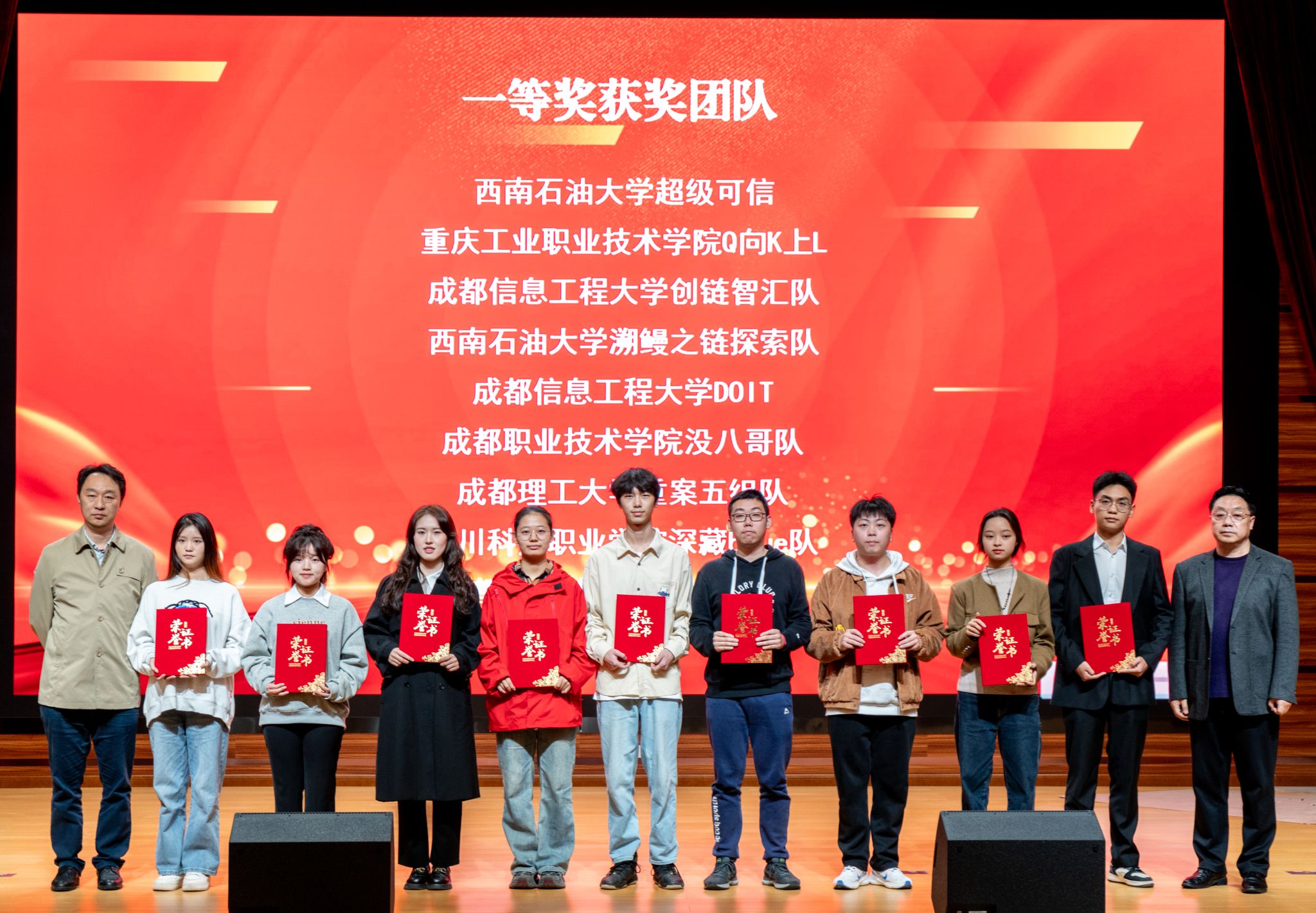 人工智能学院(区块链产业学院)党委副书记姜宇忠代表大赛组委会宣读了本次大赛各奖项名单。通过初赛、复赛和决赛的激烈比拼,共有9支队伍获得省级一等奖,其中专业技术组3支队伍、行业应用组6支队伍,分别来自成都理工大学、西南石油大学、悟空官方网站、重庆工业职业技术学院、成都职业技术学院、四川科技职业学院。17支队伍获得省级二等奖,其中专业技术组5支队伍、行业应用组12支队伍,分别来自四川农业大学、西南交通大学、西华大学、绵阳师范学院、吉利学院等院校。26支队伍获得省级三等奖,其中专业技术组8支队伍、行业应用组18支队伍,分别来自成都理工大学、四川旅游学院、重庆移通学院、绵阳城市学院、四川工商学院、四川现代职业学院等院校。大赛还评选出了15名优秀指导老师。