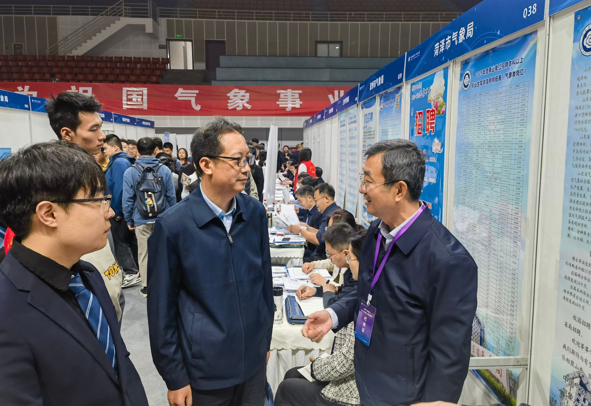 中国气象局党组成员、副局长张祖强,中国气象局人事司副司长石雪峰;中共四川省委教育工委委员,教育厅党组成员、副厅长、机关党委书记丁念友以及中国气象局办公室、人事司,四川省教育厅就业工作负责同志;学校校长何建新,副校长舒红平、罗小蓉、陈权亮等领导来到招聘现场。领导们与招聘单位代表亲切交流,并深入了解单位招聘政策、招聘需求等情况,鼓励求职学生抓住机会勇敢地展示自己,不断提高专业技能,发展实践能力,争取结合自身优势竞聘契合个人专业学习和职业规划的岗位。