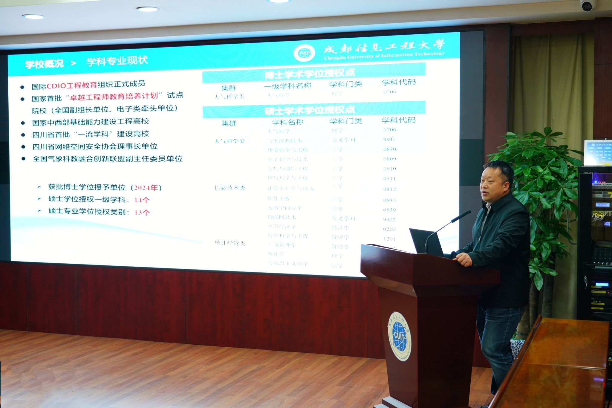 学校副校长舒红平汇报了学校在人才培养和科学研究等方面情况,展望了学校下一步发展规划,表示学校将以提升气象科技创新整体效能为主线,不断为国家气象事业高质量发展注入新的动能。