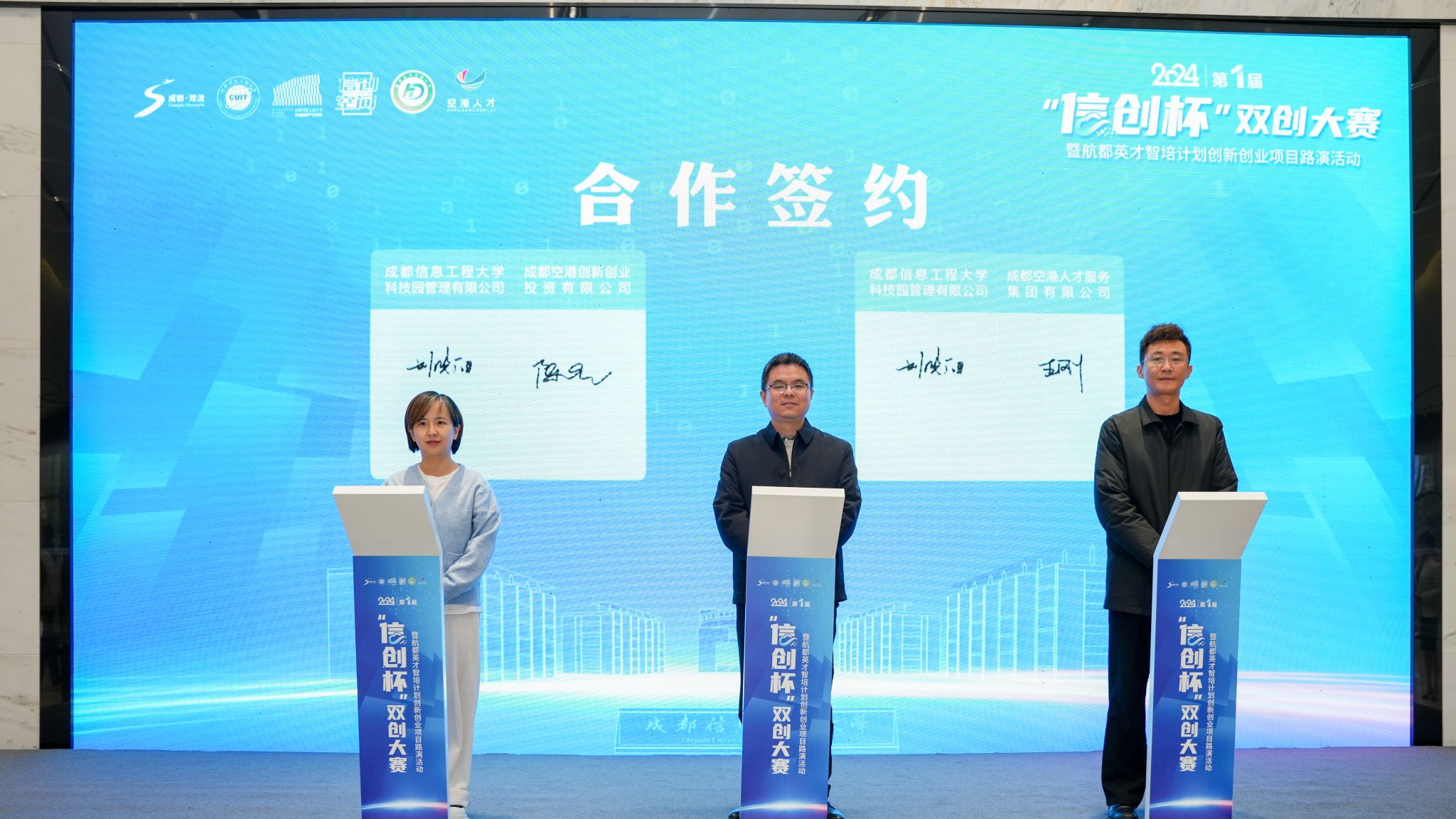 悟空官方网站科技园管理有限公司与成都空港创新创业投资有限公司、成都空港人才服务集团有限公司围绕项目孵化、技术问诊、投融资对接等方面内容进行合作签约。