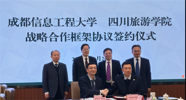 在双方领导的共同见证下,吴锡与四川旅游学院李进军代表两校签署了战略合作框架协议。本次合作的达成,将助力双方整合资源优势,开拓人才培养、科学研究和社会服务的新路径。未来,两校将协同推进“兴产”与“兴教”,在文化、科技、人才、社会和对外开放等领域,为四川的繁荣发展注入更大动力,共同推动治蜀兴川再上新台阶。