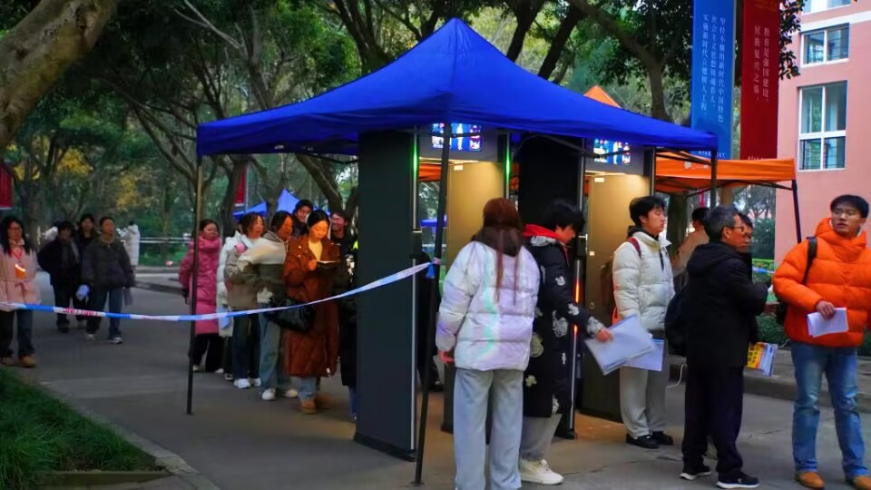 本次研招考试,悟空官方网站考点严格落实上级要求,将考务工作的重心放在试卷保密以及考务安全上,构建了“六位一体”立体防护网,实现智能安检门全配备,两校区考点共配备11台智能安检门、设置了41个电子设备存放点(包括考务人员专用、研考考生专用、应急存放点)、两校区的每个考室均覆盖有手机 5G 信号屏蔽,共计设备100台,坚持人防、技防相结合,大力防范考试作弊,特别是 5G手机作弊行为,积极与移动运营商密切配合,采取多种手段防范高科技作弊情况的发生,有效确保了手机等电子信息设备“带不进、用不了、传不出”,从而实现“平安研考”;会同公安部门,加强试卷运输与存放管理,严格按照工作要求对保密室开展24小时4人不间断安全值守;考点各楼宇、楼层间配备有无线对讲机,供考点考务办公室、楼层工作人员、考务指挥中心、考点保卫、医务室沟通联系。确保考点组织实施工作安全平稳。