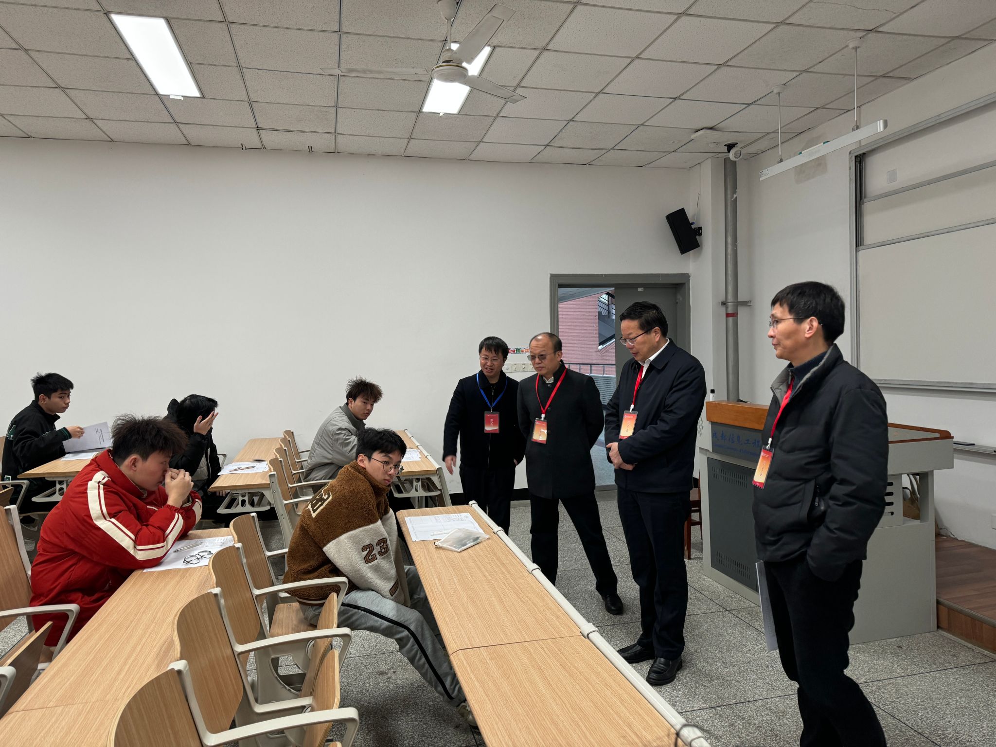 【本网讯】期末考试期间,学校党委书记沈火明、校长何建新带队,由校领导,教学督导组、党委学生工作部、教学评估中心、教务处负责人及各二级学院领导组成了考试巡查工作组,深入两校区各考场进行了全面细致的巡查和指导。