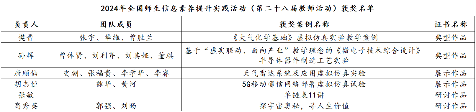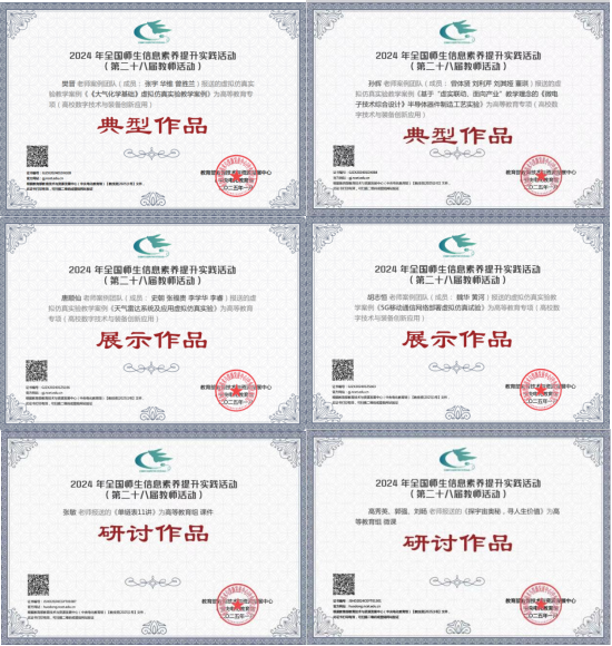 【本网讯】近日,由教育部教育技术与资源发展中心(中央电化教育馆)主办的2024年全国师生信息素养提升实践活动(第二十八届教师活动)圆满结束。我校教师团队获得国家级奖项6项,其中,典型作品、展示作品、研讨作品各2项。
