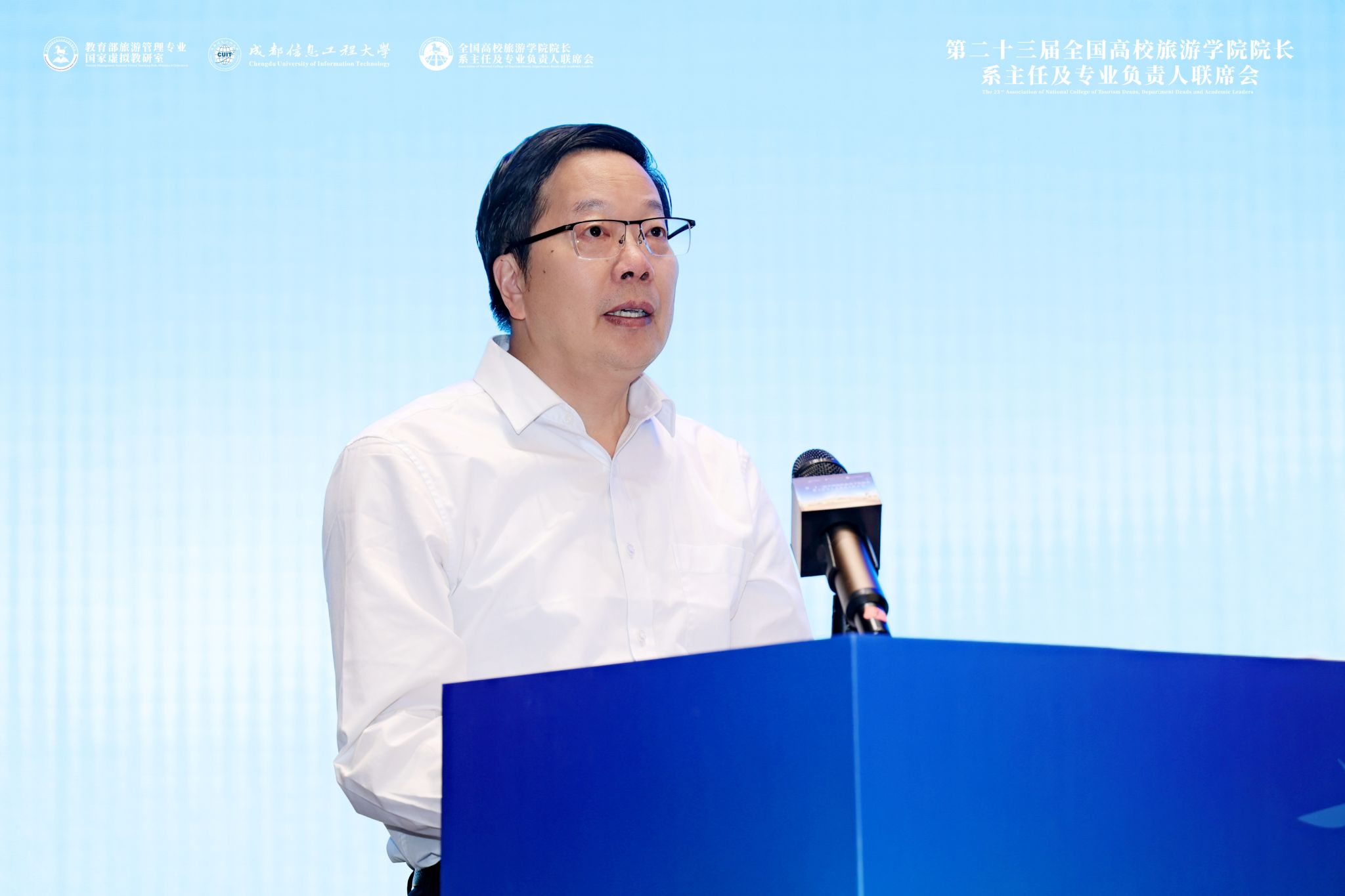 马勇教授指出联席会已成功举办22届并取得丰硕成果,在新质生产力蓬勃发展的当下,本届联席会的召开将为全方位创新助推旅游教育强国建设做出新的积极尝试。张庆国在会上呼吁各高校联合开发“中国文旅”特色课程体系,为中国建设旅游强国贡献力量。戴作安说道,截至目前四川省共有32所高校开设旅游管理类专业,获批国家级和省级一流本科专业建设点18个,在校学生1.5万人,人才培养质量持续提升,为旅游业高质量发展提供了有力的人才保障和智力支持。宋俊武在致辞中希望各高校立足行业发展趋势优化专业设置与课程体系、强化实践教学、建设高水平师资队伍等举措,培育更多兼具创新思维与实践能力的复合型文旅人才。