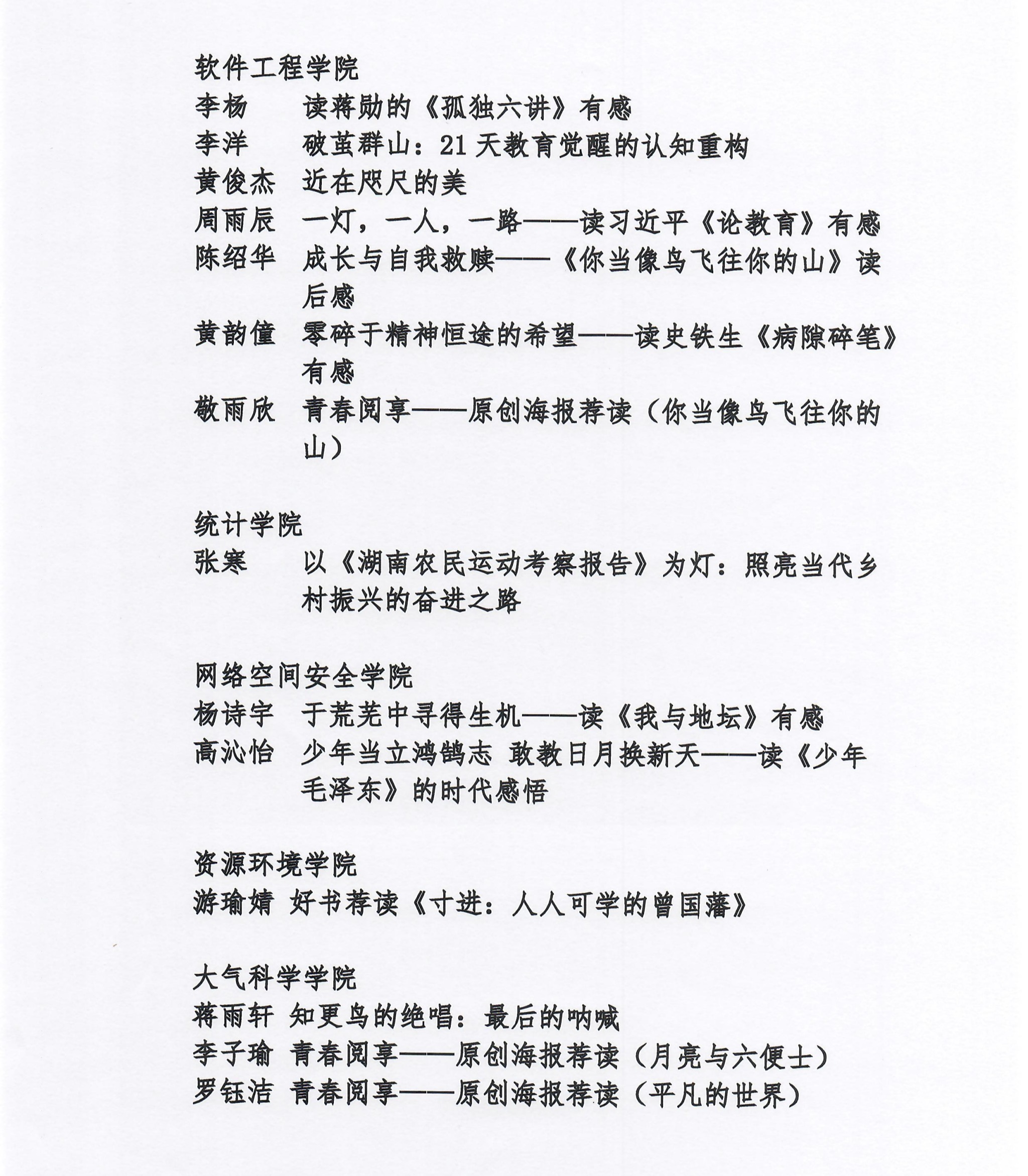 此次活动,“学习强国”四川学习平台共收到200余篇来稿,经过严格校审,最终50篇作品入选。我校推荐的39件作品(含文稿、海报、视频),有30件成功入选,由平台发布为24篇作品(7件海报组为一篇作品)。