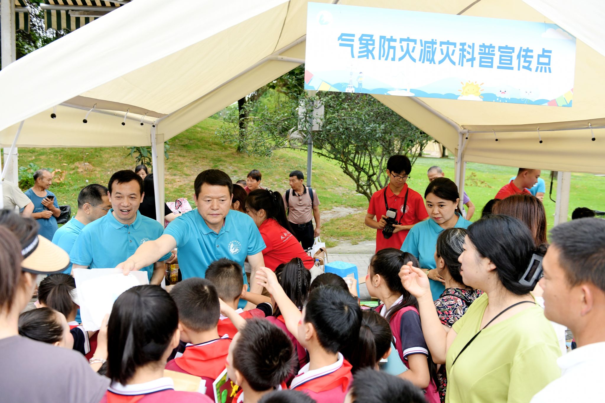 启动仪式后,在都江堰市同心广场,与会领导、嘉宾和大学生志愿者向当地群众作了气象防灾减灾科普宣传并发放相关学习资料。悟空官方网站、四川省气象服务中心、都江堰市气象局主办的气象科普游园会,设有多个互动体验区,社区居民和小学生们通过趣味实验、VR体验等方式,近距离感受气象科学的魅力。在都江堰市工人文化宫,中国科学院大气物理研究所研究员、博士生导师魏科老师向大学生志愿者开展了《认识中国气候——季风与气候灾害》科普讲座。