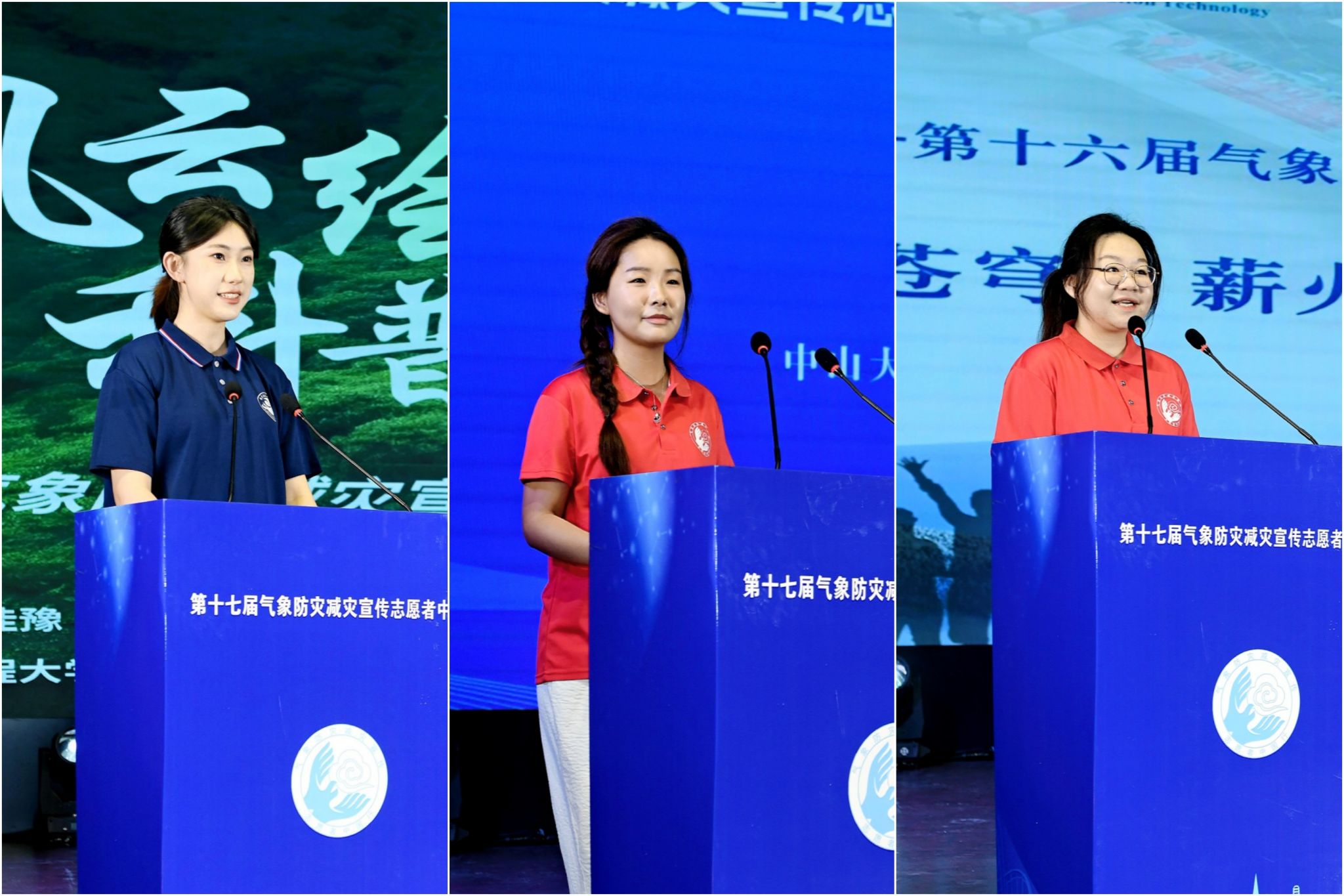 刘文泉宣读第十六届“气象防灾减灾宣传志愿者中国行”活动表彰名单。第十六届活动共遴选组织来自45所高校的144支队伍奔赴全国各地开展气象防灾减灾科普宣传社会实践活动,活动组委会评选出优秀组织单位5个,优秀志愿者队伍特等奖1个、一等奖5个、二等奖10个、三等奖12个、优秀奖12个、最佳活动效果奖1个、最佳宣传效果奖1个、最佳创意奖1个。
