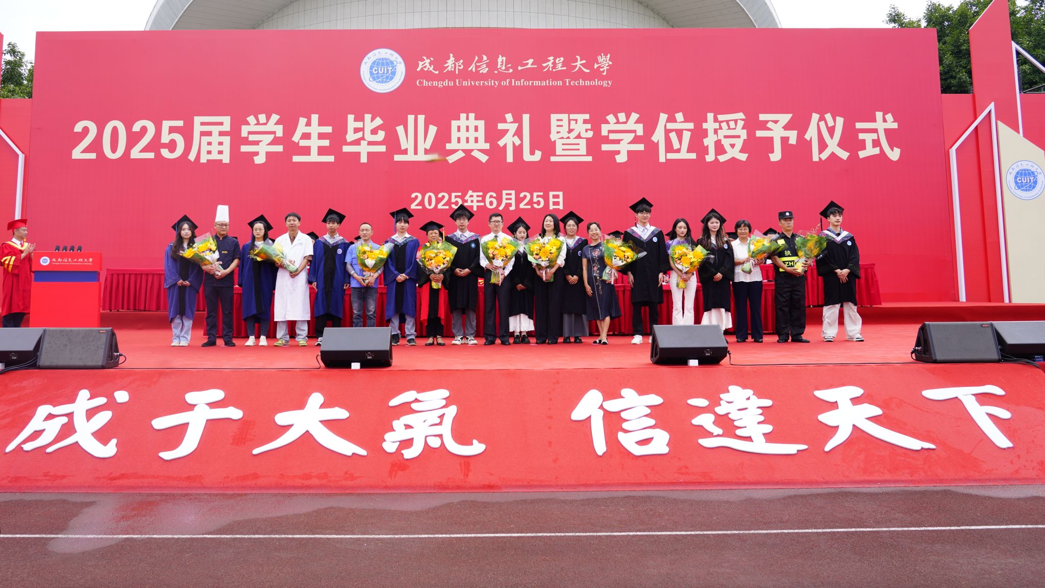 学校领导和教师代表依次为2025届四川省优秀研究生毕业生、校级优秀研究生毕业生、四川省优秀本科生毕业生、校级优秀本科生毕业生授位、颁证。