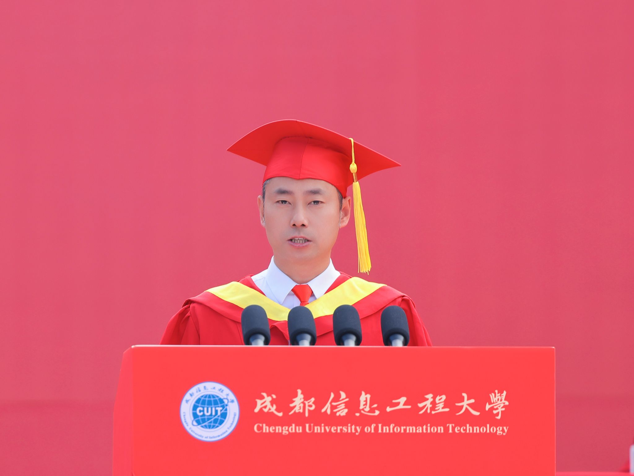 我校1981届计划统计专业校友、四川新能电力有限公司董事长李声玖作为校友代表发言。他讲述了从基层统计员到国企高管,并于2006年创业成功的奋斗历程。他勉励全体毕业生,扎根当下做好小事,注重协作沟通,强化执行力,坚持终身学习,突破舒适区,顺应国家战略大势。他期望成信学子把握当下、永葆热爱、敬畏责任,谨记母校校训,在时代浪潮中书写璀璨华章。
