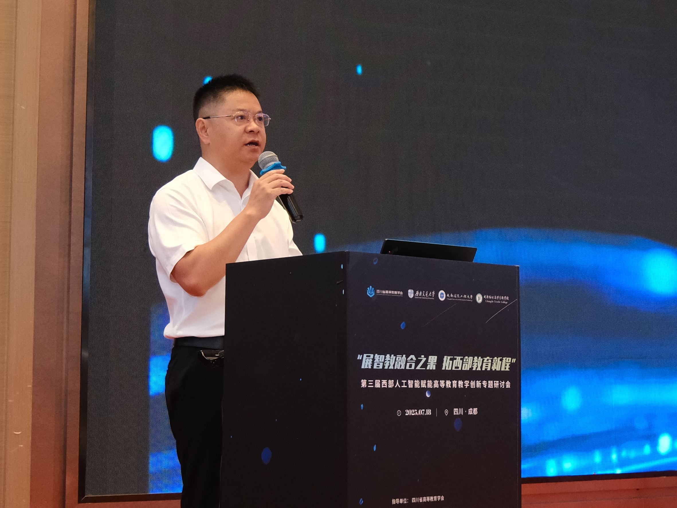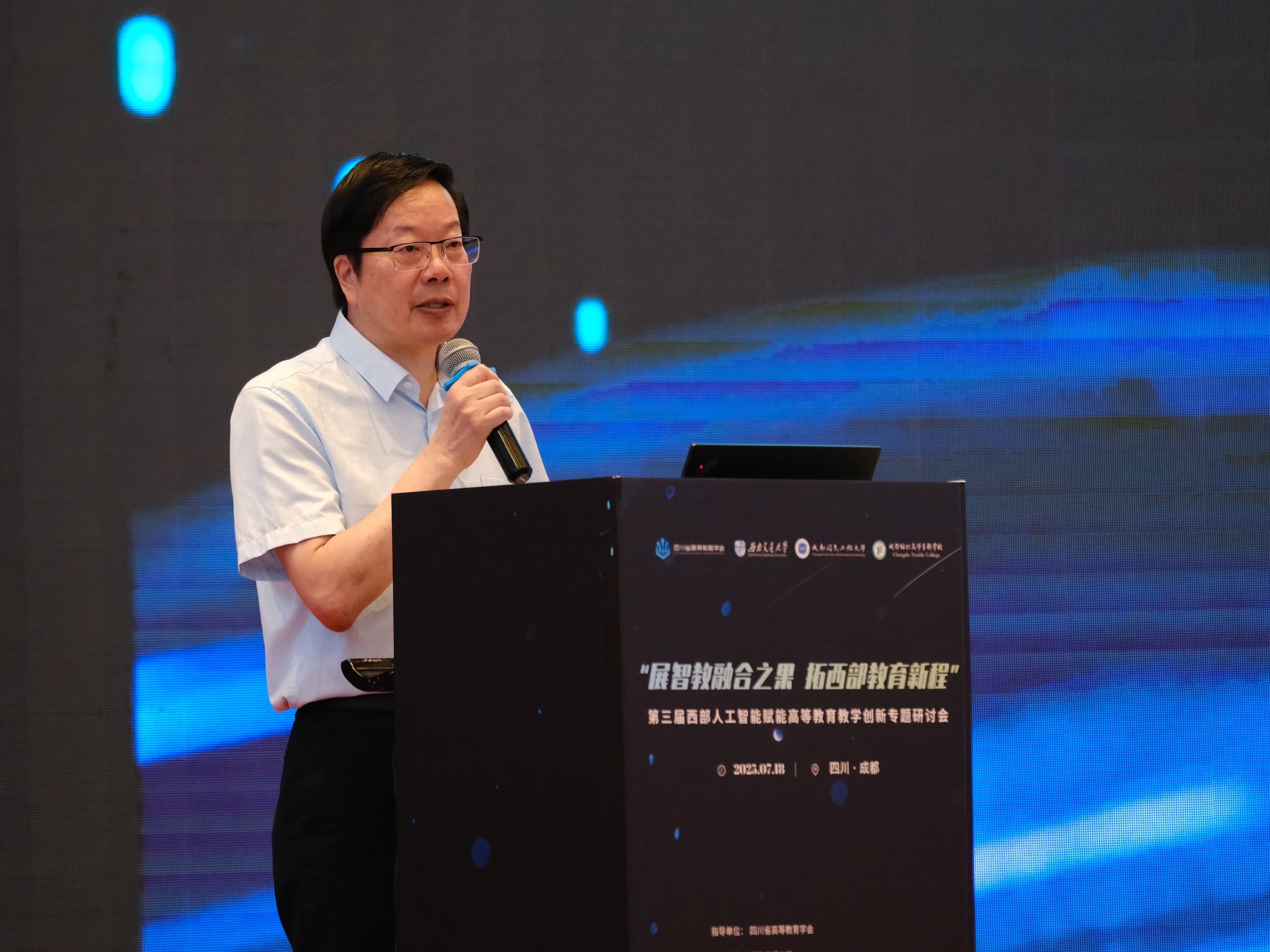 【本网讯】7月18日,第三届西部人工智能赋能高等教育教学创新专题研讨会在成都举行。本次会议由四川省高等教育学会指导,西南交通大学、悟空官方网站、成都纺织高等专科学校主办,四川省高等教育学会高职教育专委会、西南交通大学力学与航空航天学院、四川省高等教育学会高教研究专委会、四川省高等学校公共基础课程教指委、四川省高等学校教学信息化与教学方法创新教指委、上海卓越睿新数码科技股份有限公司(智慧树网)承办。本次会议以“展智教融合之果,拓西部教育新程”为主题,聚焦“融合·创新·发展:AI驱动的高校教学创新与变革”,吸引了近700名高校教育管理者、教学名师及人工智能领域专家齐聚一堂,共绘西部智慧教育发展新蓝图。