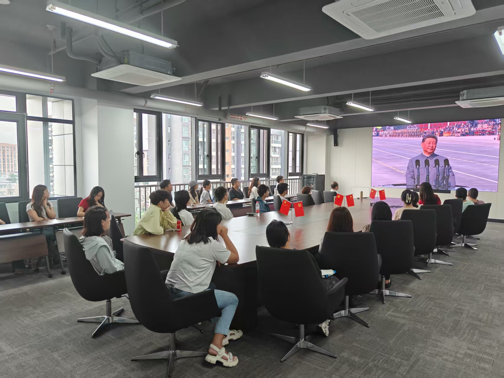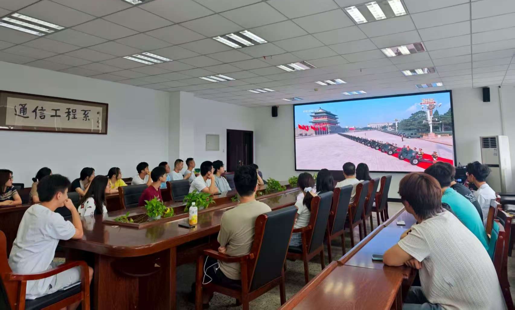【本网讯】9月3日上午,纪念中国人民抗日战争暨世界反法西斯战争胜利80周年大会在北京天安门广场隆重举行。学校组织在校师生在航空港校区行政楼第七会议室集中观看大会直播,党委副书记杨奇才,党委常委、副校长陈权亮,党政办公室、党委宣传部、研究生院、计划财务处、信息中心等部门以及部分学院师生代表参加了集中观看。校内各单位组织师生在会议室、办公室、教室、寝室等通过电台、电视、互联网等媒体平台收听收看大会直播,并通过微信群、QQ群等学习工作群交流感想和分享心得体会,共同铭记历史、缅怀先烈、珍爱和平、开创未来。