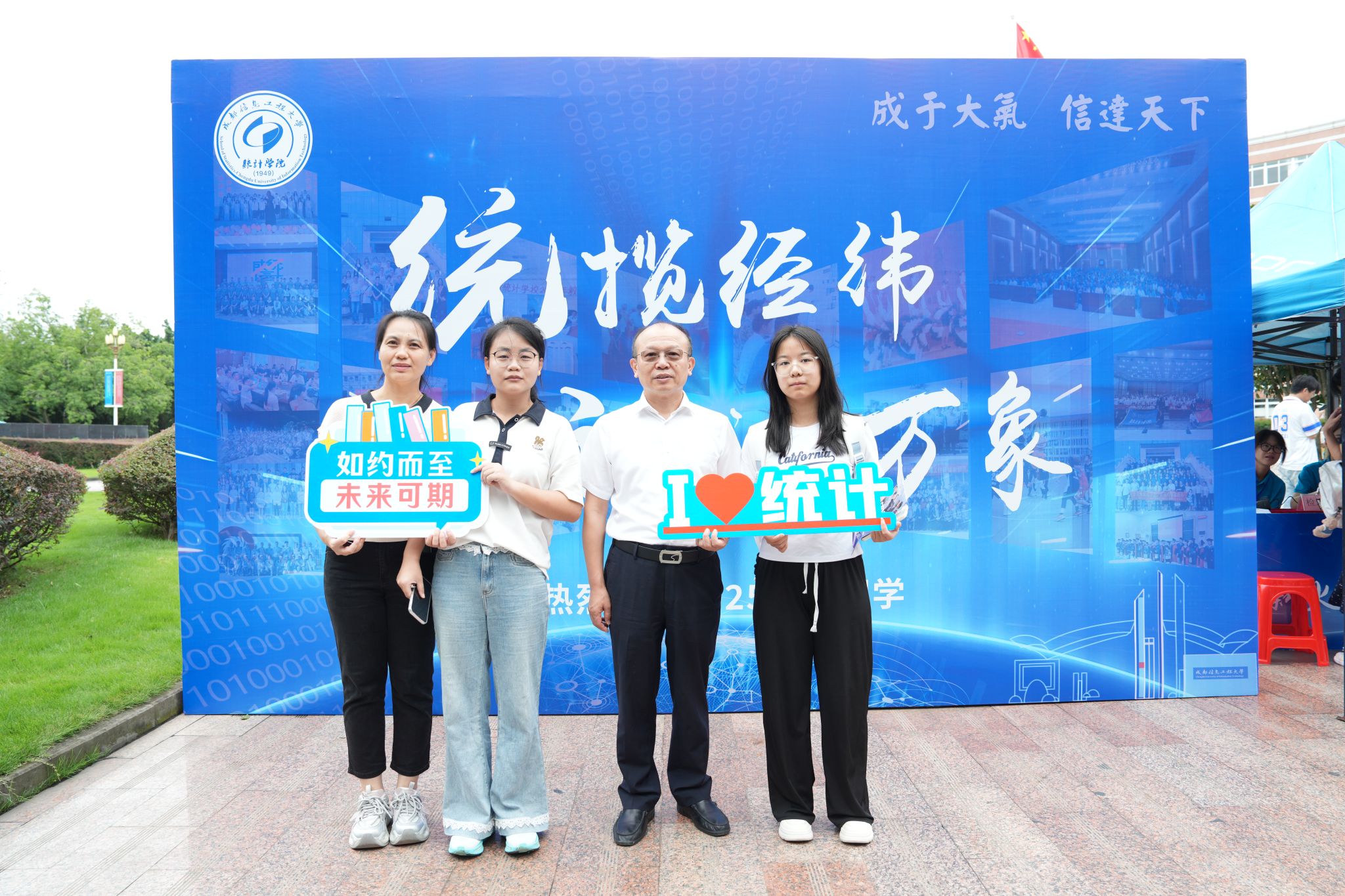 各学院别出心裁地布置喜庆精美的合影墙、欢迎标语、签名板等特色打卡点,让新同学感受到温馨舒适的校园氛围。大气科学学院精心策划的“家乡连线”活动,让新生们用图钉和线将家乡与学校相连,钉线勾勒出跨越山海的缘分;电子工程学院在迎新点位展示全国大学生电子设计竞赛优秀作品,志愿者带领新生操作“打靶小车”;通信工程学院在合影墙上用新生名字排列成学院名称,为2025级新生打造专属迎新记忆……创意性的欢迎方式,让新生和家长们深切感受到专属于成信人的真情告白与祝福鼓励。