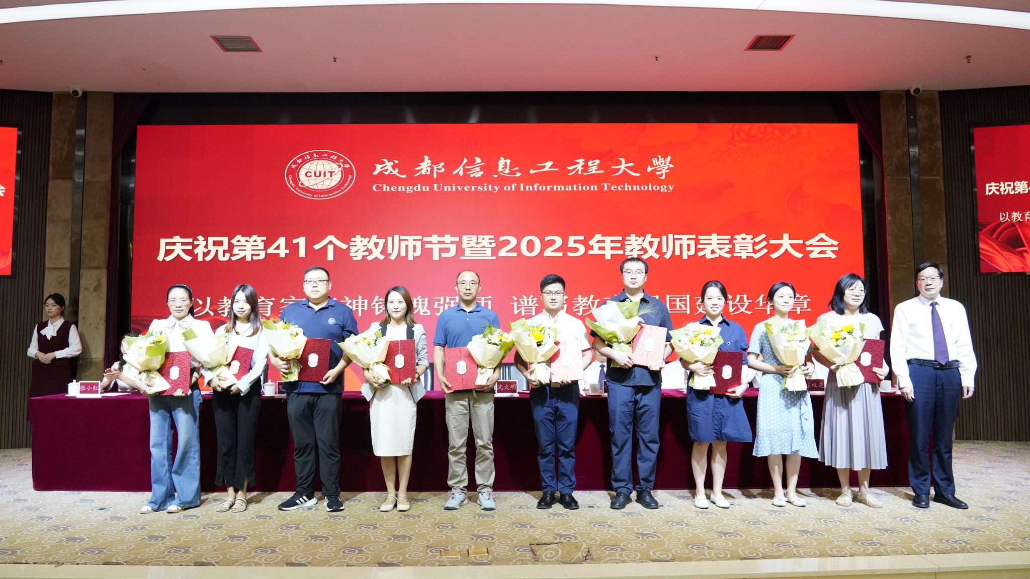 学校对在各个领域取得突出成绩、为学校发展作出卓越贡献的优秀教师予以表彰,学校校长何建新宣读了表彰文件。张葛祥、李勇两位教授遴选为享受国务院特殊津贴专家;大气科学学院院长华维教授获“全国气象教学名师”称号;大气科学学院葛非教授获国家级人才称号;唐婷婷、李勇、陈浩3名教师获省级人才称号;赵长名老师获成都市人才称号。学校启动荣誉体系,教务处、科技处获“管理服务先进集体”称号;自动化学院、人工智能学院获“就业工作先进集体”称号;昌燕等5名教师获“研究生优秀指导教师”称号;郜东瑞等8名教师获“成信科技英才奖”;于尧等25名教师获“管理服务先进个人”称号;侯倩等10名教师获“就业工作先进个人”称号;田媛等10名辅导员获我校“十佳辅导员”称号。白杨、郭俊等10名教师获学校“青年教师教学奖”。此外,还有数10名教师在“第九届全国高等院校英语教师教学基本功大赛”“第十二届电工电子基础课程实验教学案例设计竞赛”等教学竞赛中获国家级、省级奖项。学校还对本年度获得“光荣从教30年”荣誉称号和“光荣退休奉献奖”的退休教师予以表彰。