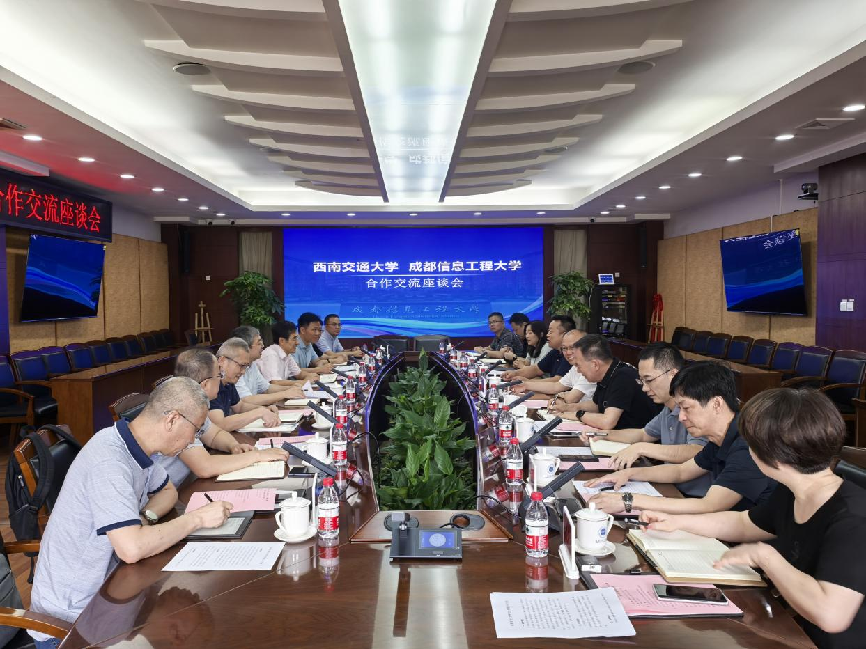 【本网讯】7月11日下午,西南交通大学党委常委、副校长王平一行8人访问我校。学校校长、党委副书记何建新,党委常委、副校长舒红平与王平一行在七会议室座谈交流。会议聚焦气象大数据赋能智能交通、防灾减灾等技术领域研发和成果转化问题展开讨论。成信资产公司董事长宫冠英、党政办公室、科技处等负责人参加会议。会议由舒红平主持。
