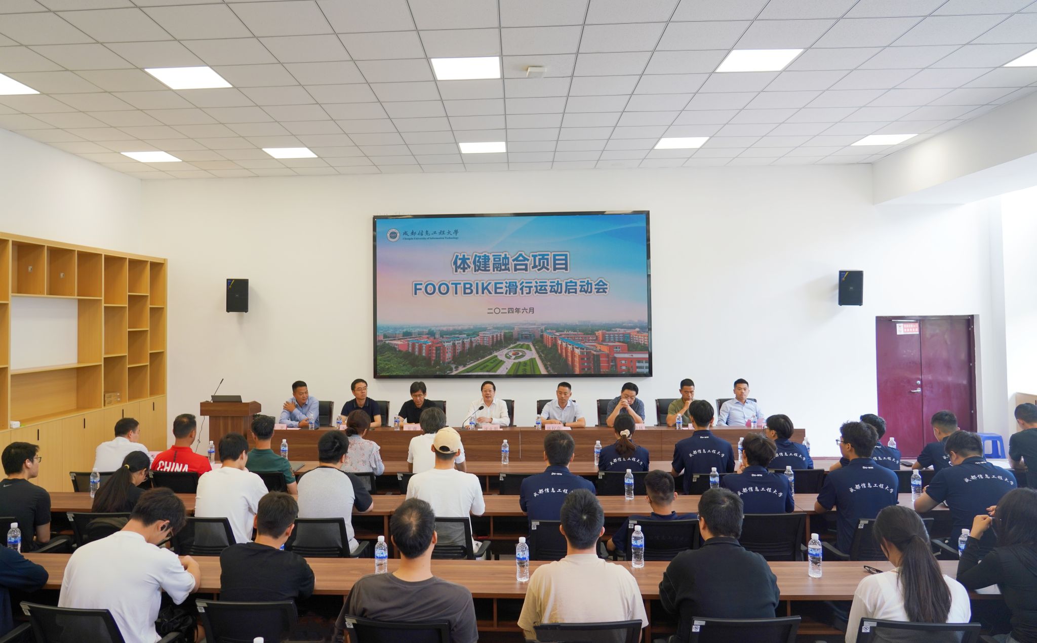 程艺介绍了“体健融合”项目的基本情况,此项目经各省级高等教育学会和体育专业委员会评审推荐、由中国高等教育学会立项公示。全国共50个项目获准立项,其中重点项目11 项,我校为四川省唯一获得重点立项的学校。体健融合Footbike滑行车项目以体育课程为基础、以体育俱乐部为依托、以第二课堂锻炼为抓手,通过课程教学、第二课堂活动、体育竞赛、课题研究等方式加速构建课内外一体化的体育教育格局,促进学校形成崇尚体育、热爱运动的校园文化氛围。