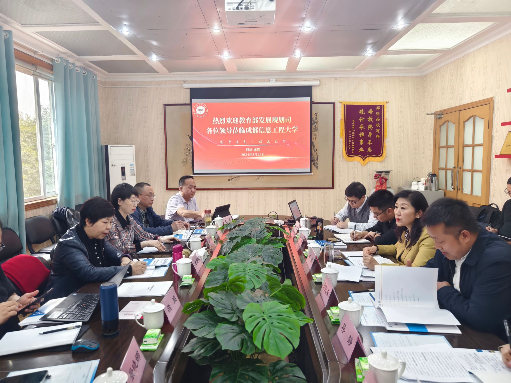 教育部学校规划建设发展中心副处长关欣、教育部教育管理信息中心负责人魏鹏、武汉大学教育统计专家李远军、辽宁教育学院教育统计专家景晓娜、云南省教育厅教学仪器装备中心主任王磊等专家团队成员以及四川省教育厅发展规划处处长唐磊、发展规划处副处长蒋静等,我校发展规划处、科技处、国内合作处等负责人随行调研。
