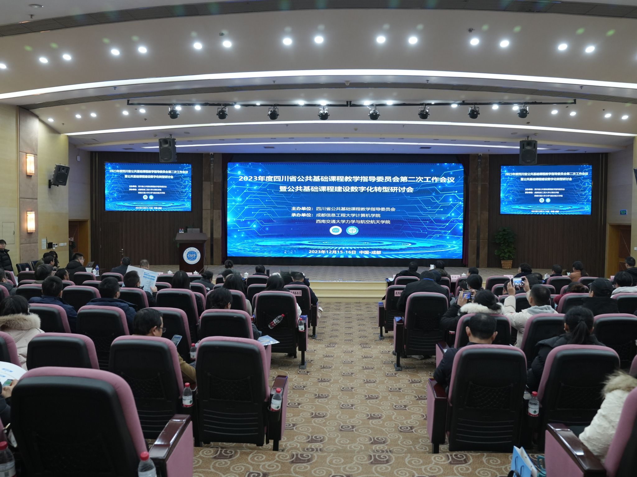 【本网讯】12月16日,由四川省公共基础课程教学指导委员会主办,我校计算机学院承办的四川省公共基础课程教学指导委员会第二次工作会议暨公共基础课程建设数字化转型研讨会在学校航空港校区召开,本次会议主题为“树立教育数字化理念,推动公共基础课程教学高质量发展”。四川省教育厅高等教育处四级调研员陈建跃,四川省高校公共基础课程教学指导委员会主任委员、学校党委书记沈火明,副校长吴锡出席会议,教指委主任委员、副主任委员、秘书长及来自省内高校的近100名基础课程教师参加本次会议。