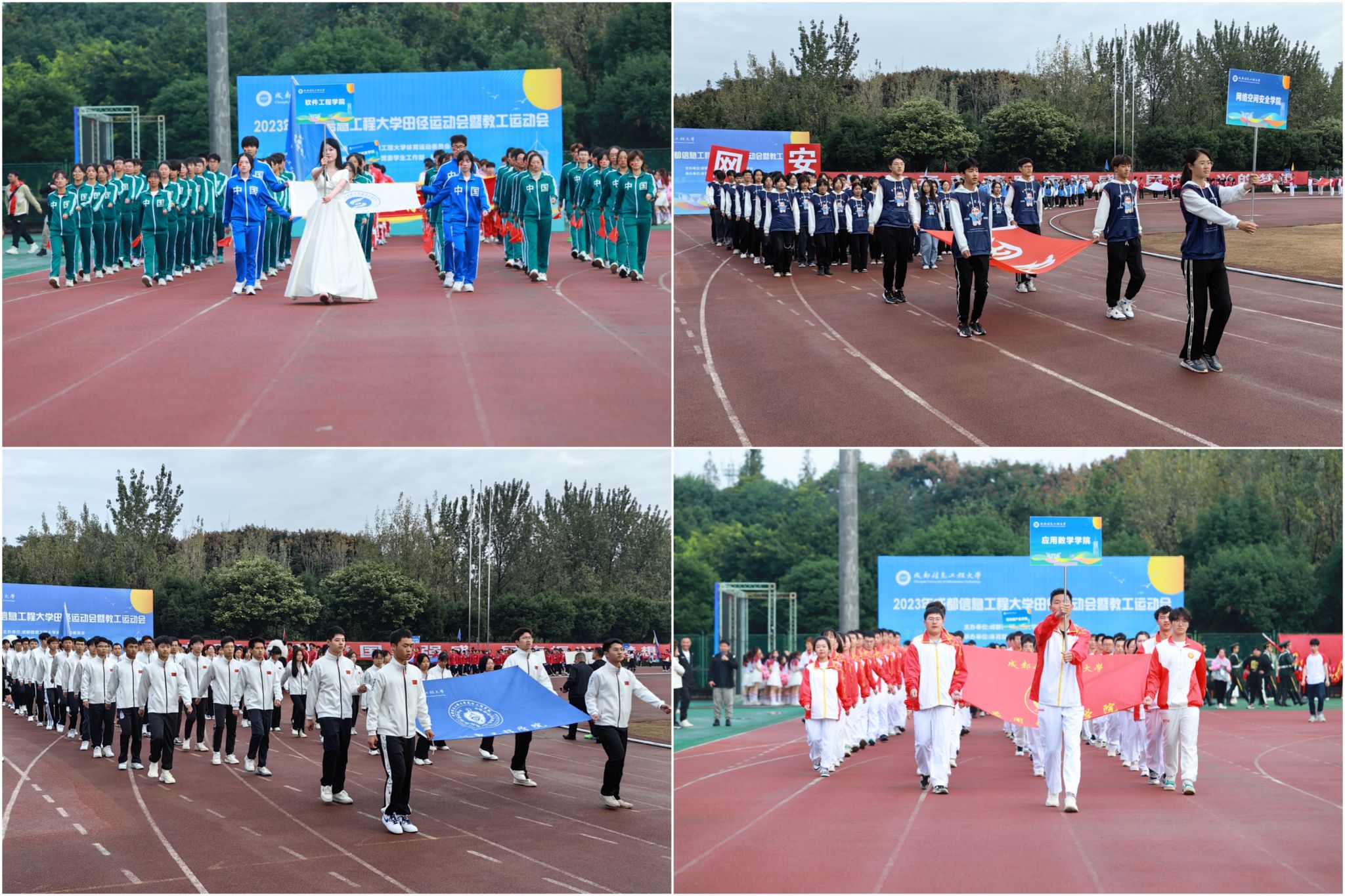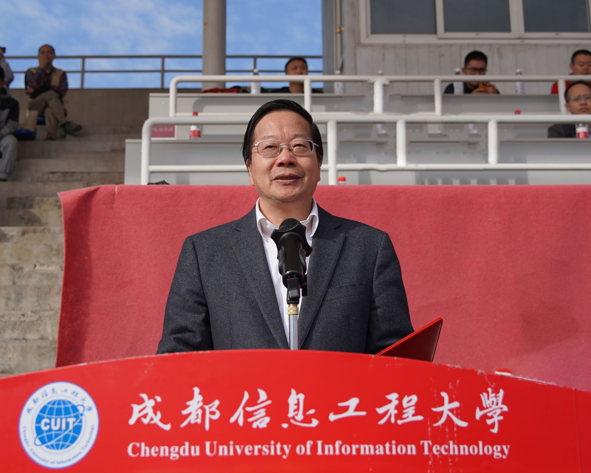 校长何建新开幕式致辞。他代表学校对运动会的胜利召开表示热烈的祝贺,向筹备本次运动会的全体师生表示衷心的感谢。他指出,“体育强则中国强,国运兴则体育兴。”体育承载着国家强盛、民族振兴的梦想。开展校园体育运动,是增强师生员工体质、丰富校园文化内涵的重要举措。体育精神不仅适用于体育赛事,更适用于我们的人生赛场,适用于我们干事创业的全过程。过去十年,学校成功更名大学、获四川省博士学位授予立项建设“优先培育高校”,各项事业不断推进,教学、科研成果丰硕,是全校师生积极参与、团结协作的结果,凝聚着全校师生无私奉献、奋力拼搏的汗水。成信人为学校内涵建设、特色发展的砥砺奋进和追求卓越就是体育精神在大学校园里的最好体现。他号召大家将体育精神融入到学校各项工作,积极主动、齐心协力,顽强拼搏、坚持不懈,携手推进学校的各项事业开创新局面、更上新台阶。
