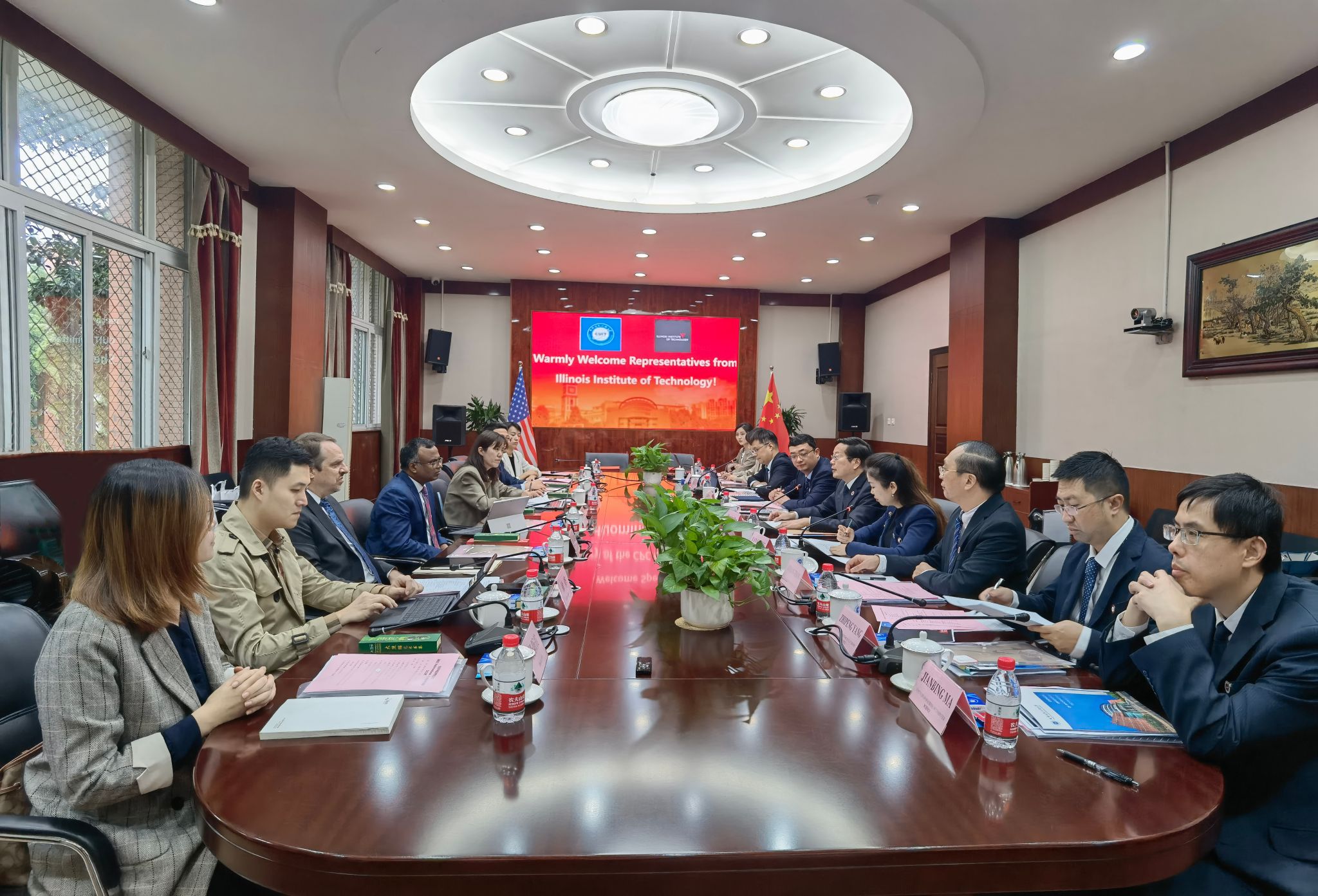 【本网讯】 10月23日上午,美国伊利诺伊理工大学(Illinois Institute of Technology,USA)副校长Mallik Sundharam、阿默工程学院院长Kevin W. Cassel、国际招生管理经理徐烨一行来访我校。学校党委书记沈火明,校长何建新、副校长吴锡在航空港校区第六会议室与来宾交流座谈。会议由国际交流与合作处处长许源平主持。
