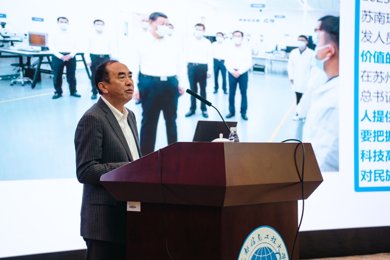 何建新对赵辉一行表示热烈欢迎,并对省知识产权服务促进中心长期以来对学校的支持和帮助表示衷心感谢。他介绍了近年来我校在人才培养、学科和专业建设、科学研究、成果转化等方面的基本情况。他强调学校非常重视知识产权的保护、运营和管理,积极推动成果转化,加强科产教融合。他表示学校将贯彻党的二十大精神,保障知识产权工作开展,为四川科技创新和经济社会发展做出更大贡献。