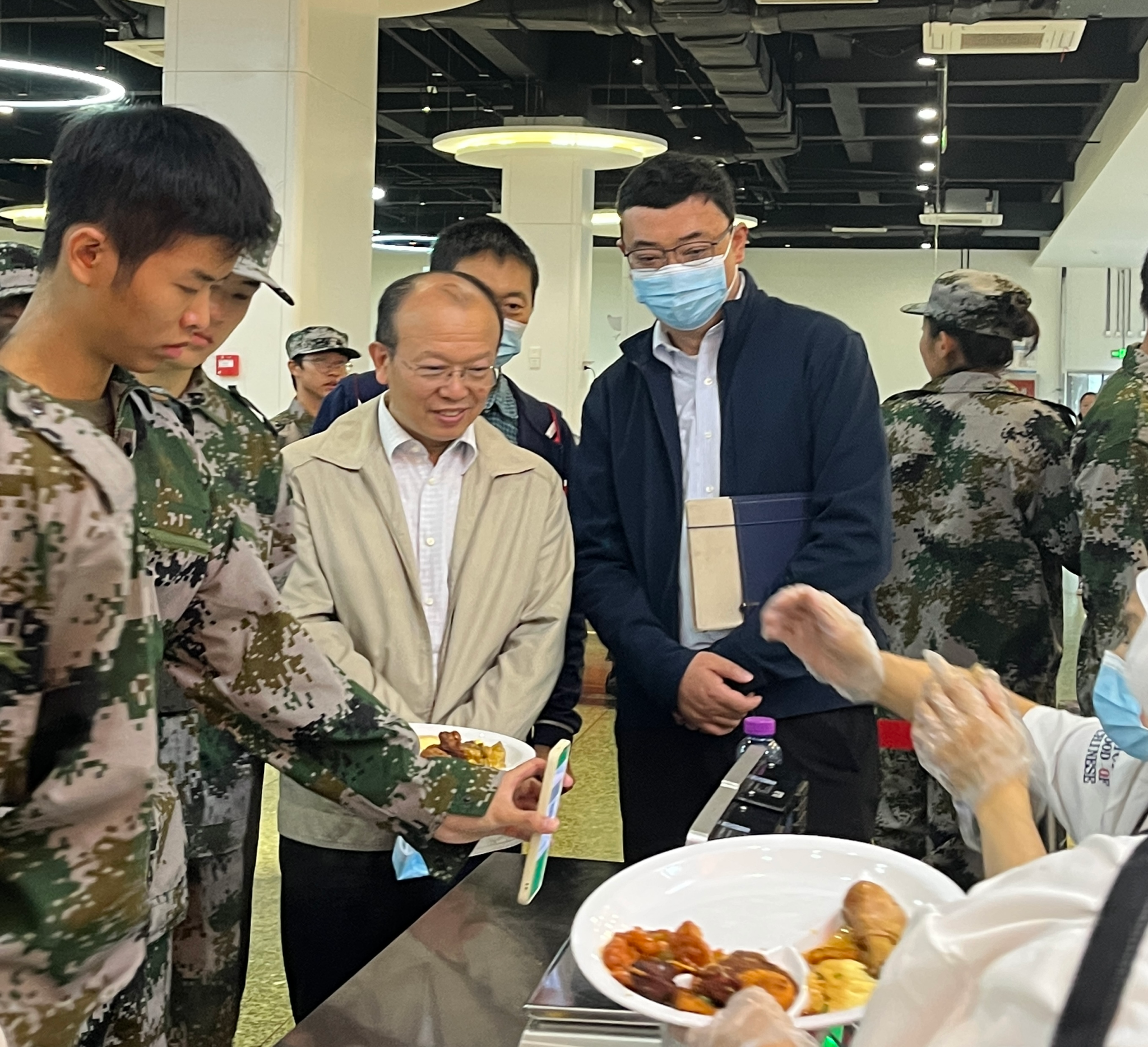 【本网讯】10月8日下午,学校校长何建新、副校长吴锡带队,对航空港校区各食堂的安全、卫生工作进行了现场检查指导,后勤基建处、饮食服务中心负责人陪同检查。