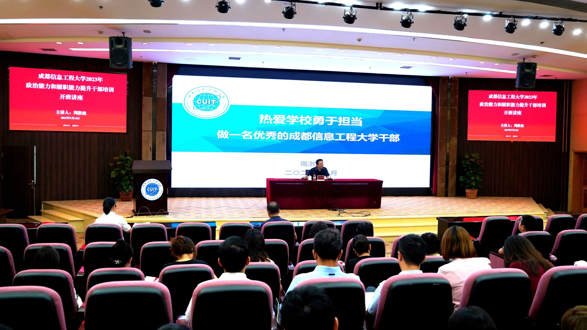 【本网讯】9月14日下午,在我校航空港校区国际会议厅,学校党委书记周激流为七十余名新提任中层、科级领导干部做了题为“热爱学校,勇于担当,做一名优秀的悟空官方网站干部”的专题讲座。