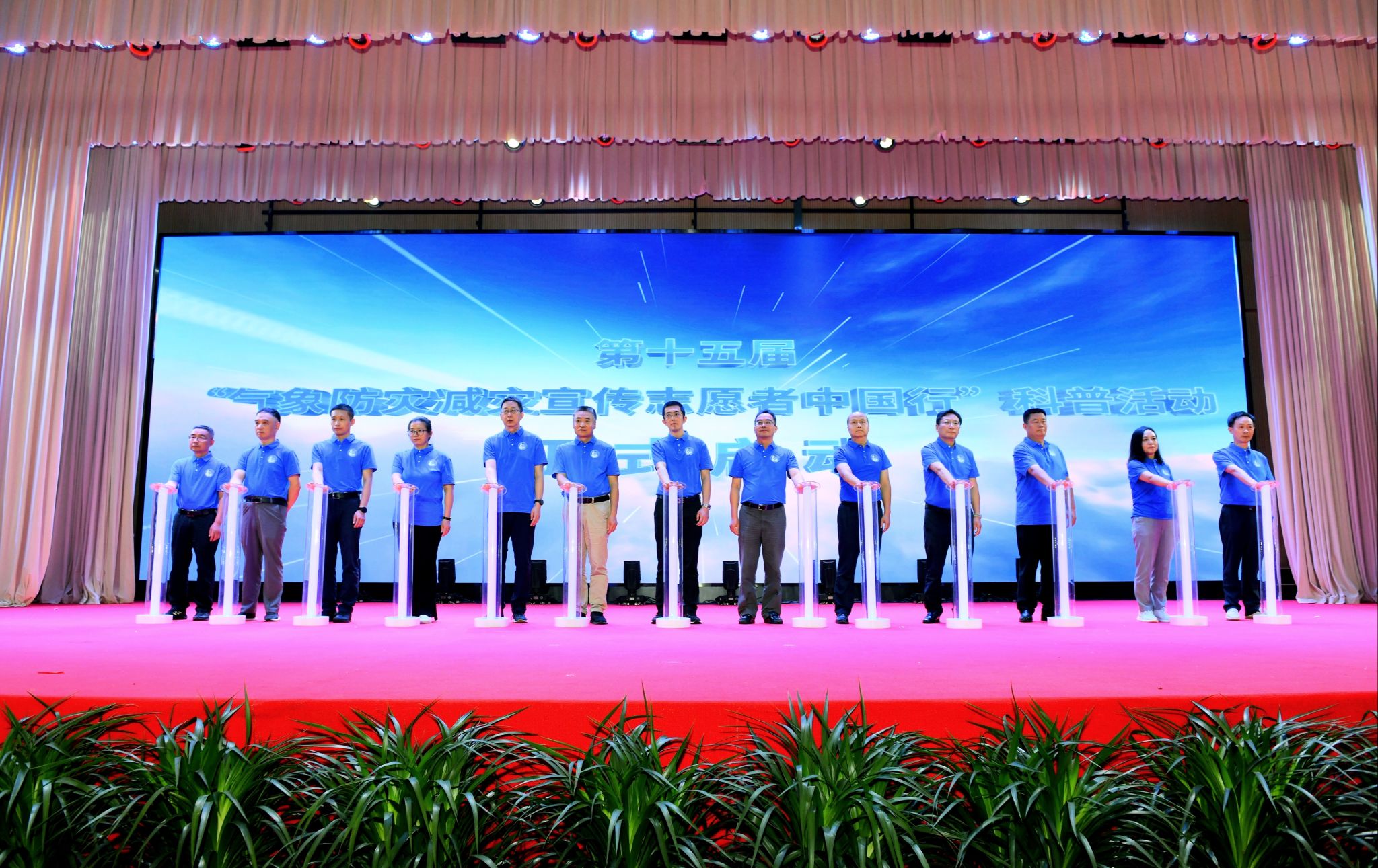 与会领导共同启动了第十五届“气象防灾减灾宣传志愿者中国行”活动。