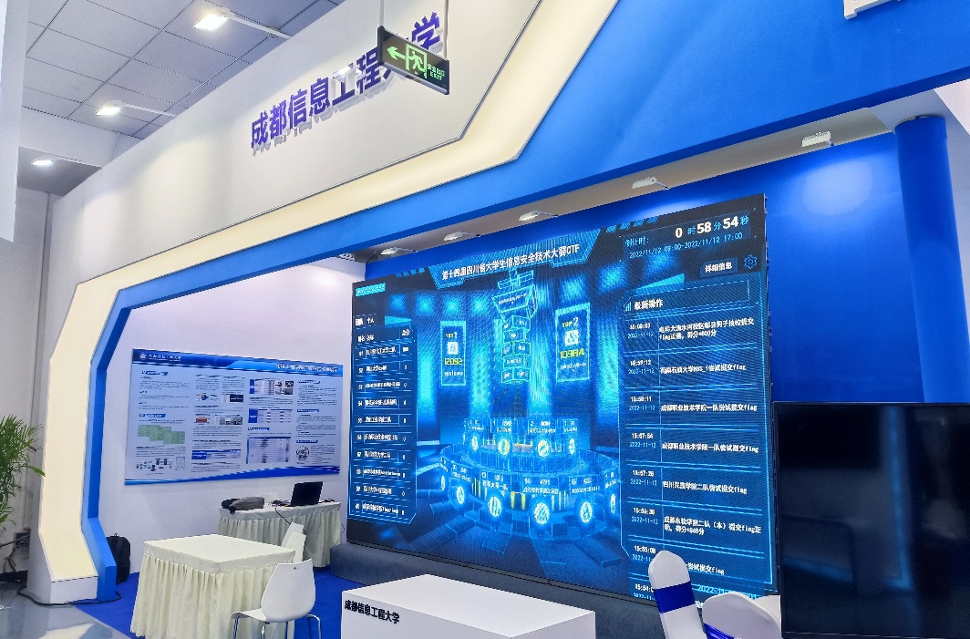 我校作为重要的参展单位,在装备制造展区进行了为期一周的展示,重点呈现了学校2020年获四川省首批产教融合示范项目以来的建设成效。学校与中国网安合作打造了网络安全竞技平台、APT演练平台,建成集成电路实践教学中心、微电子器件与集成技术科技创新与转化中心、先进传感器与人工影响天气工程技术研究中心。学校派出专人到博览会现场进行讲解。