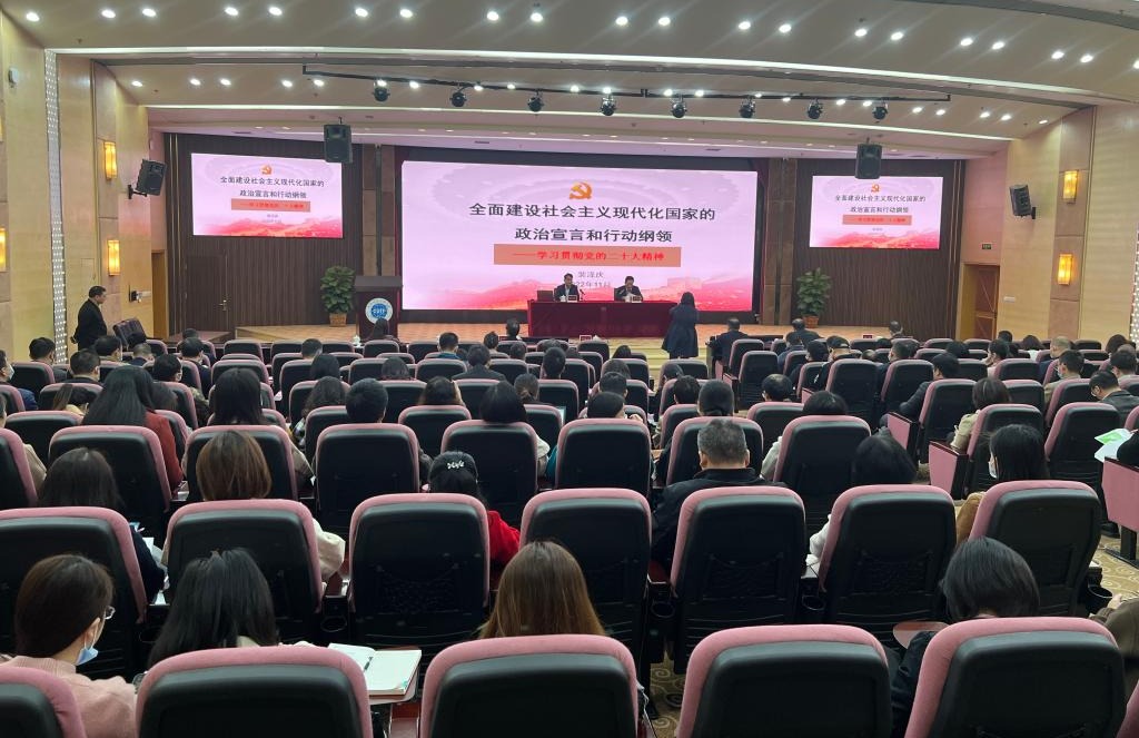 裴泽庆在宣讲中提到,党的二十大是在全党全国各族人民迈上全面建设社会主义现代化国家新征程、向第二个百年奋斗目标进军的关键时刻召开的一次十分重要的大会,是一次高举旗帜、凝聚力量、团结奋进的大会。他从“深刻把握党的二十大的主题和主要成果”“深刻把握过去5年的工作和新时代10年的伟大变革”“深刻把握开辟马克思主义中国化时代化新境界的历史责任”“深刻把握以中国式现代化全面推进中华民族伟大复兴的使命任务”“深刻把握全面建设社会主义现代化国家的目标任务”“深刻把握加强党的全面领导和全面从严治党的部署要求”等方面对党的二十大精神作了全面系统的解读。