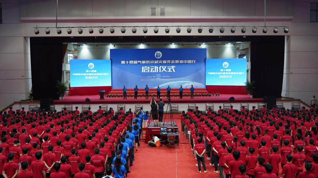 活动现场播放了第十四届“气象防灾减灾宣传志愿者中国行”宣传视频,并进行了联盟旗帜、各高校校旗出旗仪式。