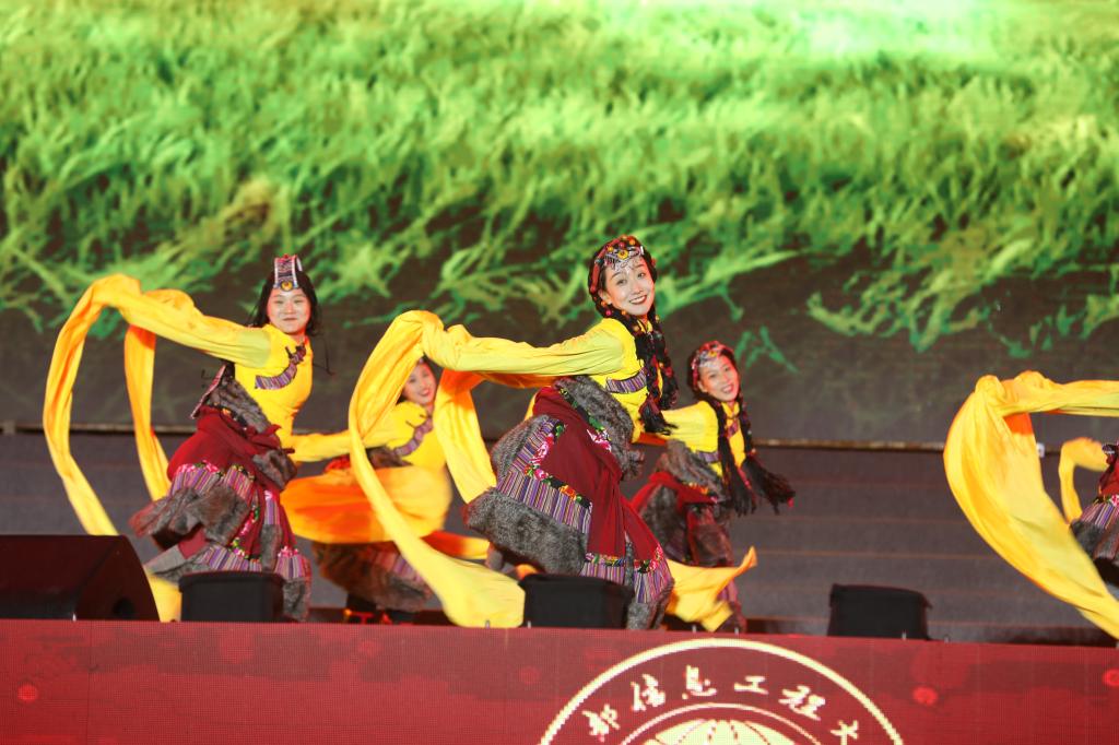 【本网讯】栉风沐雨七十载,春华秋实满庭芳。10月22日晚,学校航空港校区第二田径场灯光璀璨、欢歌笑语,庆祝建校70周年文艺晚会在这里隆重举行。全国气象系统、统计系统、部分合作单位和兄弟院校的领导,学校全体校领导、部分老领导,来自全国各地的校友代表、在校师生代表等一万余人观看了晚会。