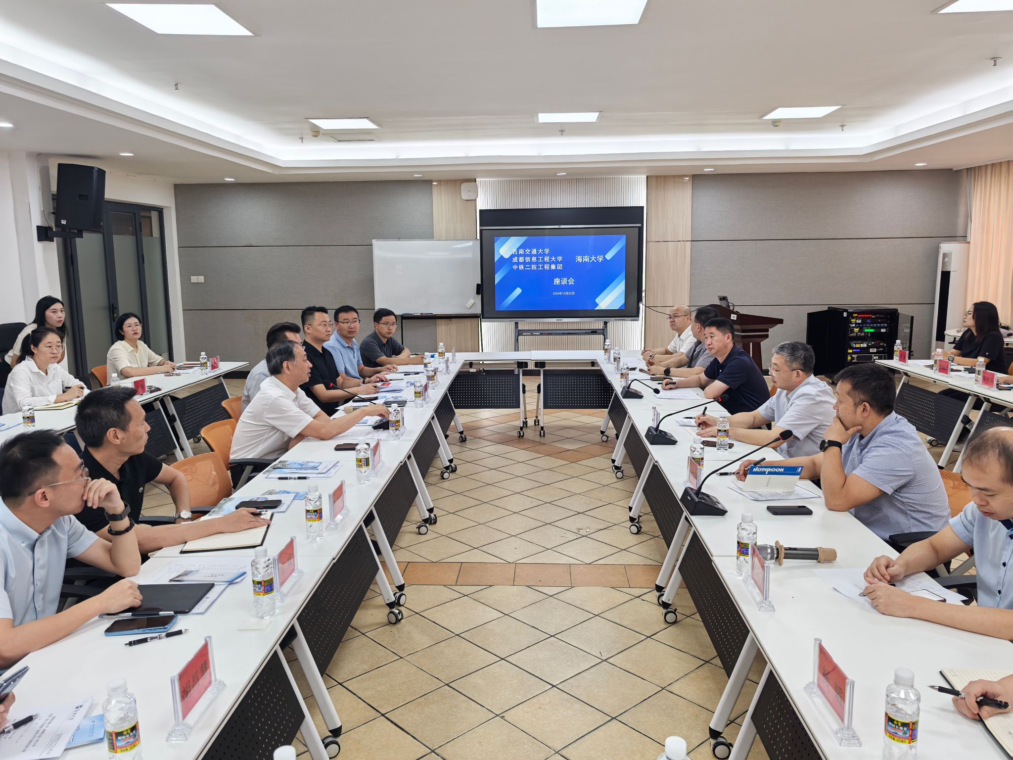 10月23日,舒红平一行到海南大学参观交流。座谈会上,海南大学党委常委、副校长邹勇华对舒红平一行来访表示热烈欢迎。海南大学、西南交通大学以及我校分别介绍了学校发展情况。与会各方就今后开展各方面的合作交换了意见,主要就智慧交通、氢能源领域、“气象+”领域等技术领域研发和成果转化问题展开讨论,探讨共建产业研究院模式,为今后的合作与交流打下了良好基础。