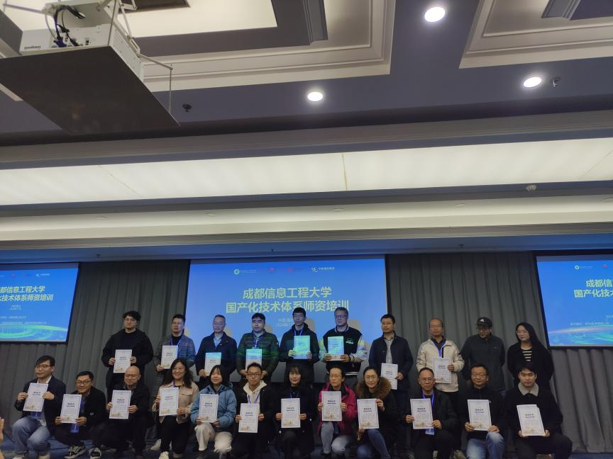 【本网讯】经过为期一周的集中式师资培训,由我校主办、华为技术有限公司和中软国际教育科技集团协办的国产化技术体系师资培训班于11月22日顺利结业,并举行了结业仪式,来自我校及西华大学、成都理工大学、成都大学、西南石油大学和西南科技大学的共56位教师参加了此次培训。