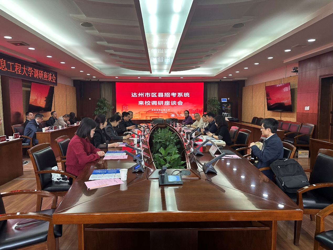 【本网讯】3月27日,达川区教育考试院、大竹县大学中专招生委员会办公室、渠县教育考试院、通川区教育考试中心一行来我校调研座谈。学校大气科学学院、人工智能学院、统计学院、招生就业处相关负责人和老师参加座谈。