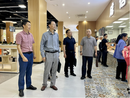 会后,朱波强一行到我校航空港校区第二学生食堂、学生生活配套服务区域进行了实地调研。