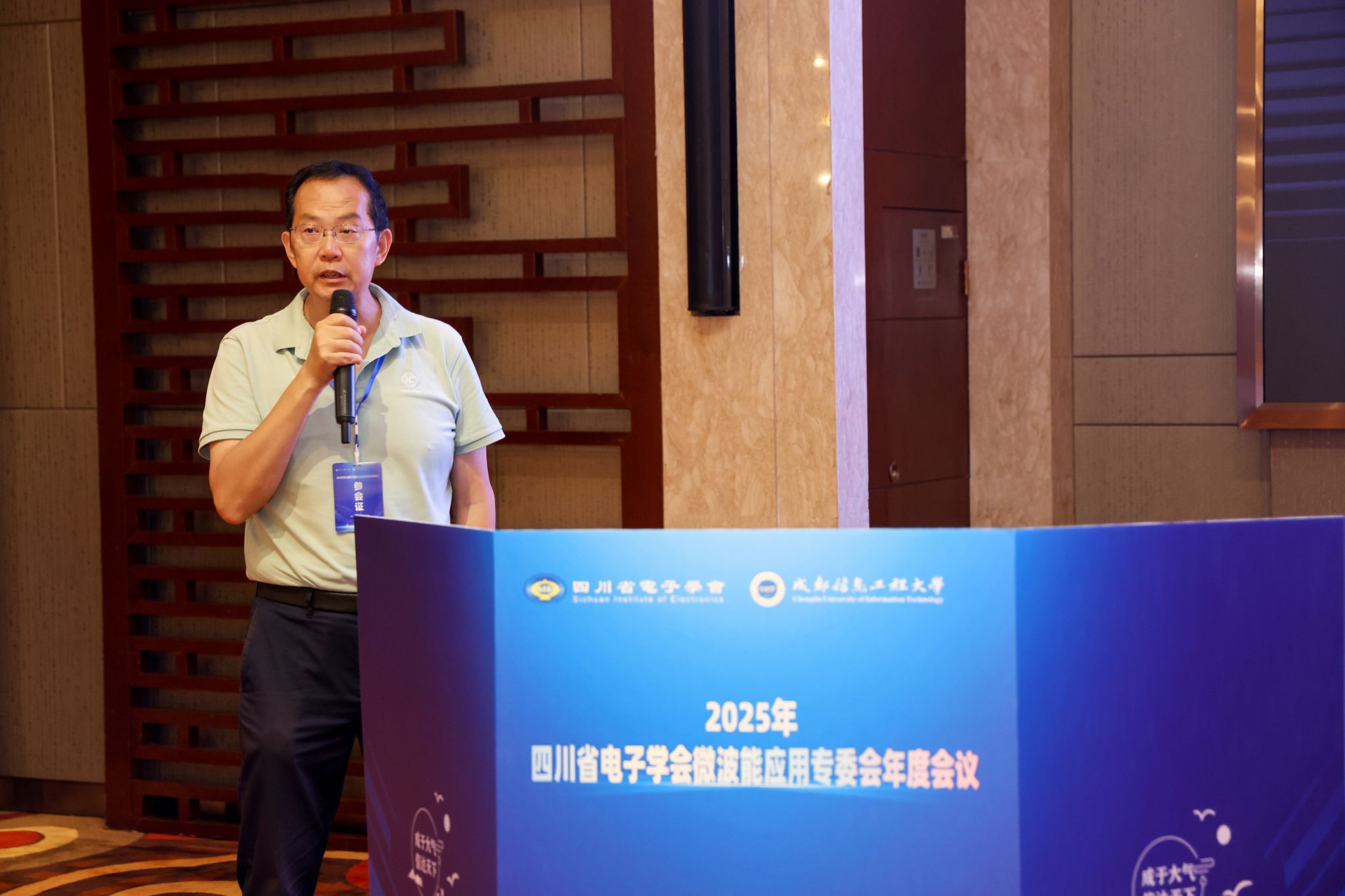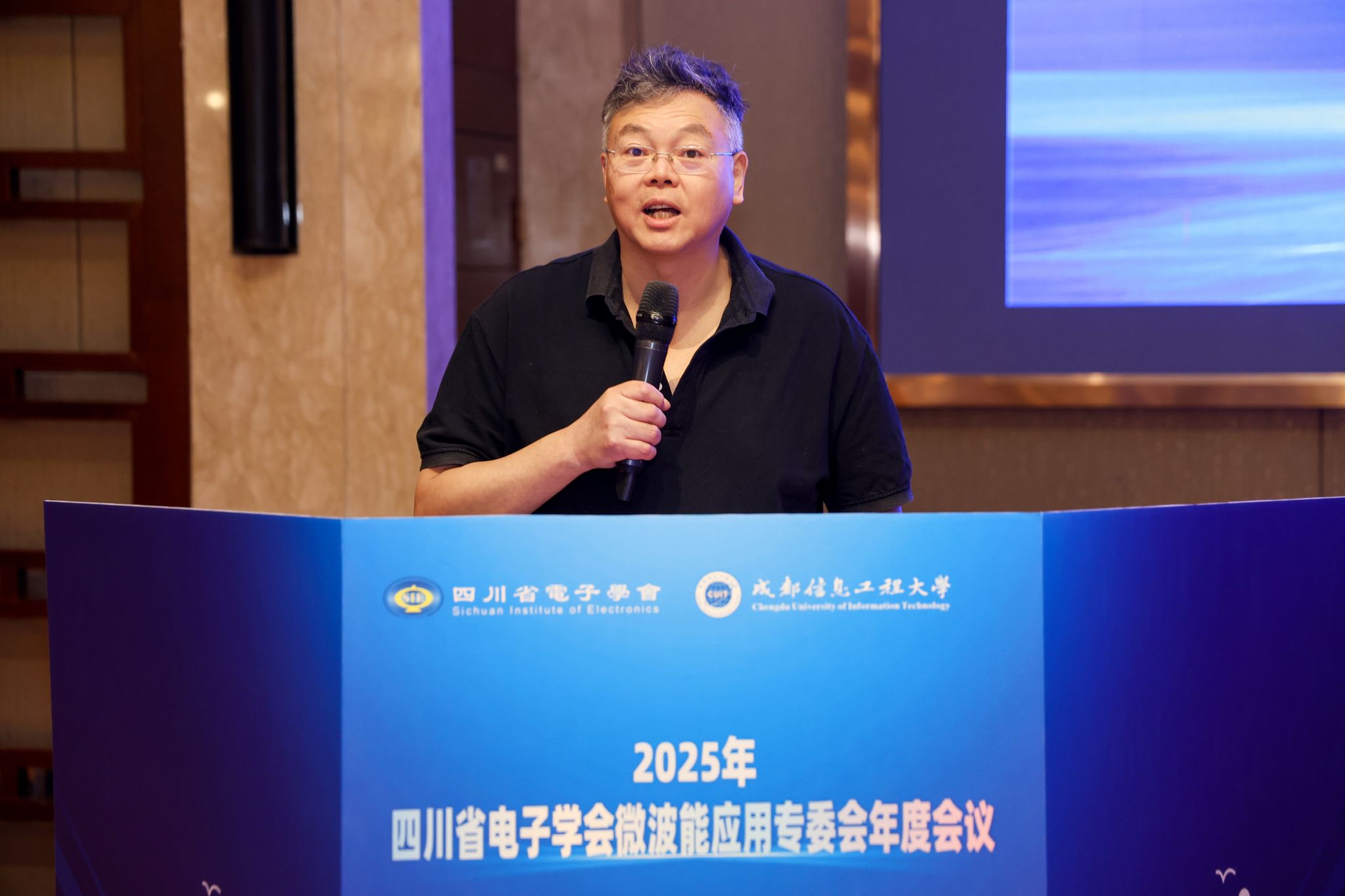 四川省电子学会微波能应用专委会主任委员、四川大学黄卡玛教授发表致辞,回顾了专委会近年来的工作成果,并对未来研究方向提出展望。