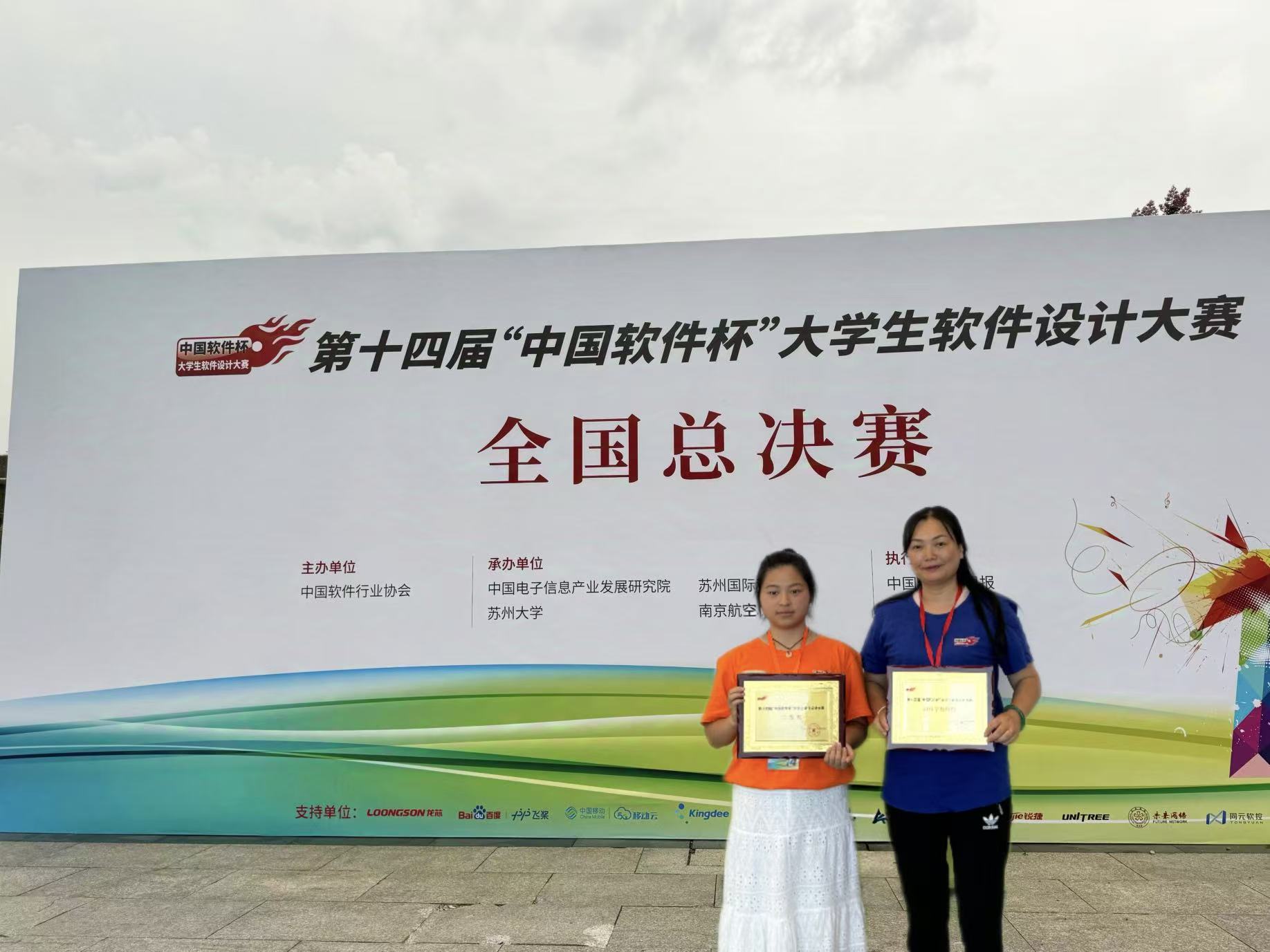 【本网讯】近日,第十四届“中国软件杯”大学生软件设计全国总决赛在苏州大学圆满落幕。本届大赛以“数智筑基 软件铸魂”为主题,吸引了来自全国31省市(自治区、直辖市)800余所高校的5604支队伍参赛。经过层层选拔,共有210支优秀团队进入现场总决赛。学校积极组织队伍参赛,最终软件工程学院何豆豆、李文潇、杨鑫林组成的“BUG退散队”和朱熙、石文博、陈春汛组成的“少年先疯队”在比赛中,凭借扎实的专业能力,沉着冷静,团结协作,脱颖而出,双双荣获全国总决赛普通高等教育组三等奖。学校也被授予“最佳学校组织”称号。