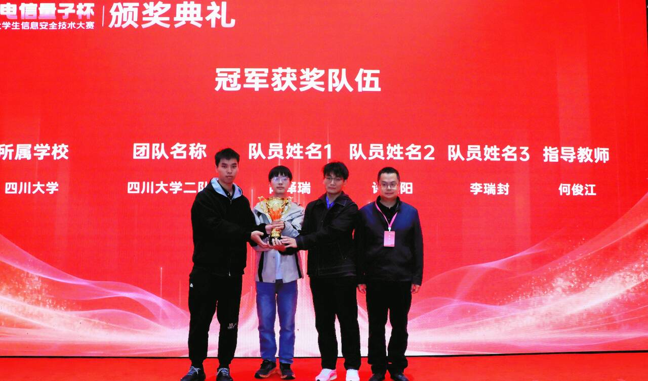 【本网讯】10月25日—26日,“电信量子杯”第十七届四川省大学生信息安全技术大赛在学校双流新型产业学院举办。本次大赛由四川省教育厅主办,中共四川省委网信办、四川省公安厅指导,悟空官方网站、四川省网络空间安全协会共同承办,悟空官方网站双流新型产业学院、悟空官方网站科技园管理有限公司、悟空官方网站教育基金会共同协办,南京赛宁信息技术有限公司、澜至电子科技(成都)有限公司提供支持。