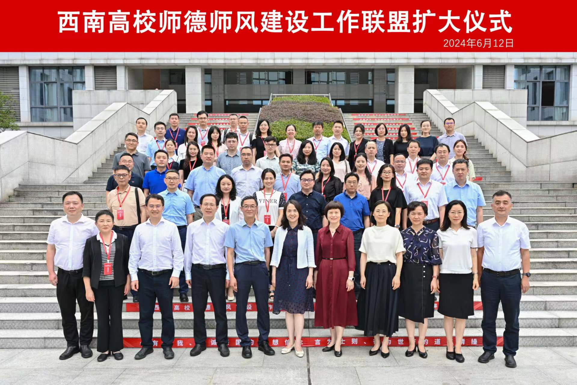 韩劲红作题为“大力弘扬教育家精神建设高素质教师队伍”的报告,传达学习了习近平总书记关于教育的重要论述,分析研判了师德师风建设形势及存在的主要问题,并介绍了持续深化师德师风建设的主要举措。她表示,成立西南地区高校师德师风建设工作联盟,推动协同探索、区域共建,是主动作为的创新之举,有利于推动提升师德师风建设工作水平、建设高素质专业化高校教师队伍。希望大家一起努力,当好弘扬教育家精神的引领者、师德师风建设的示范者、深化教师队伍建设改革的开拓者、弘扬尊师重教良好风尚的力行者。