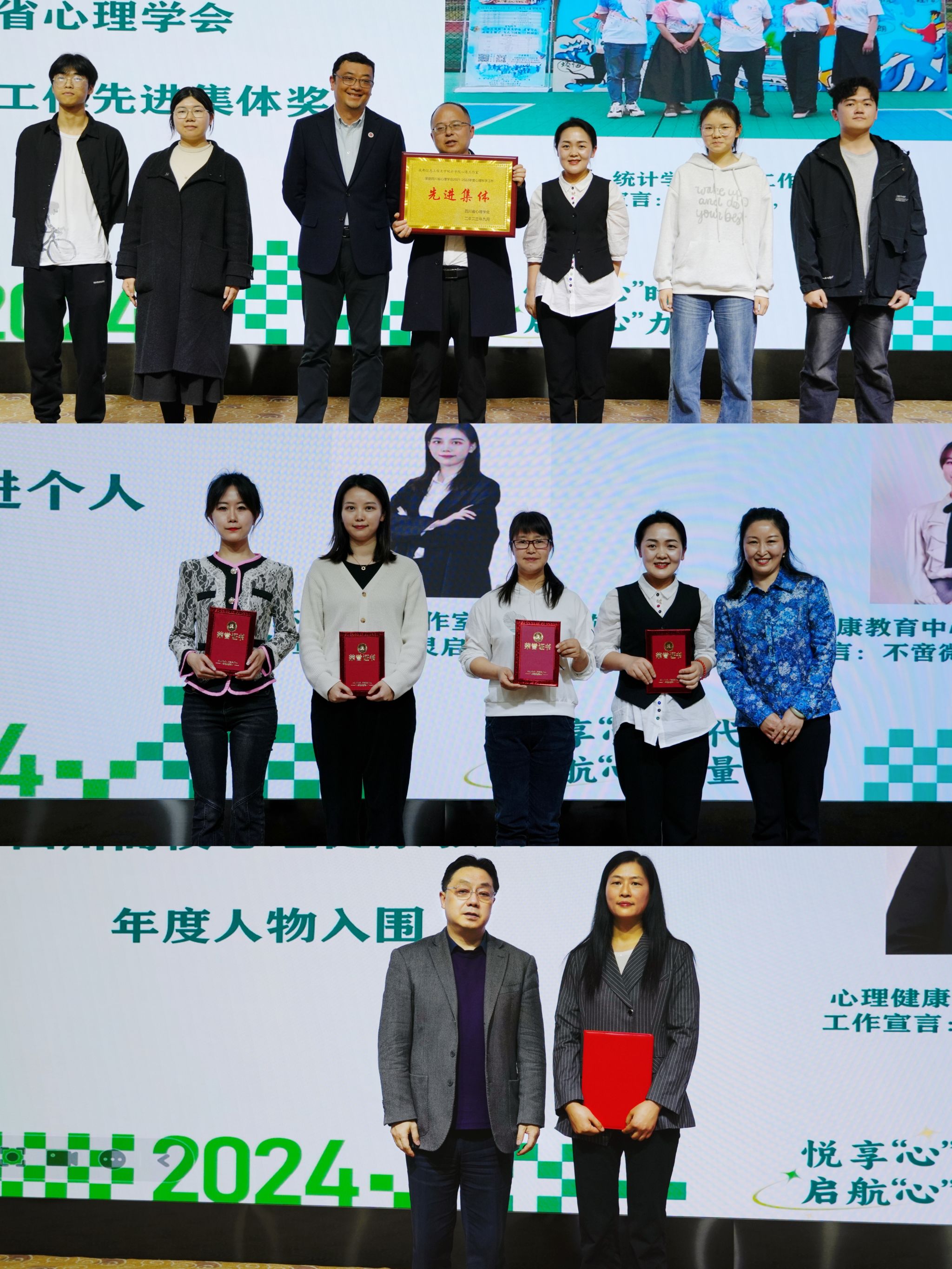 与会嘉宾和领导为我校荣获四川省心理学会心理科学工作“先进个人”“先进集体”和入围四川省高校心理健康教育年度人物荣誉称号的个人和集体颁奖。