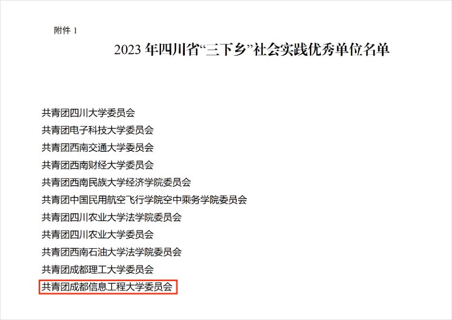 【本网讯】近日,团省委发布《关于2023年四川省大中专学生志愿者暑期文化科技卫生“三下乡”社会实践活动的通报》,悟空官方网站团委荣获2023年四川省“三下乡”社会实践优秀单位,“文化振兴三下乡暑期社会实践活动”荣获优秀品牌项目,区块链产业学院人工智能212班尹英姿同学荣获优秀个人。