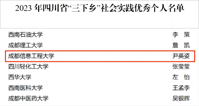 尹英姿获四川省“三下乡”社会实践项目优秀个人
