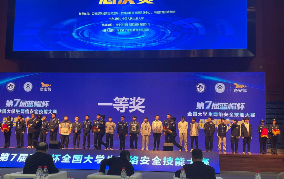 经过激烈的竞争,我校网络空间安全学院信息安全214班刘启正同学所带领的悟空官方网站队伍(她也终为过往队)在本次比赛中荣获一等奖,其中网络空间安全学院指导老师杨帆、夏焜获得杰出指导老师奖。