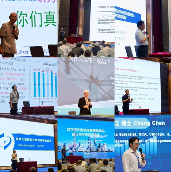年会特邀台湾辅仁大学谢邦昌教授、四川省统计局曾俊林副局长、美国雪城大学陈江教授、国家统计局四川调查总队黄加才副总队长、中国人民大学吴喜之教授、东北财经大学王维国教授、悟空官方网站朱胜教授、四川大学寇辉教授,悟空官方网站特聘教授、上海财经大学徐国祥教授,北京大学邓明华教授、复旦大学黎德元教授、悟空官方网站段苏玲博士分别作了大会报告,涉及AI、政府统计、数据驱动、视频大数据、数据科学与统计标签、数字金融,生育意愿调查,序、拓扑与理论计算机科学,数字经济与高质量发展、生物统计、经济统计、食品工业等领域问题研究。年会设置了4个平行分会场、79场分组报告,统计学院师生积极参与并做了分组报告。