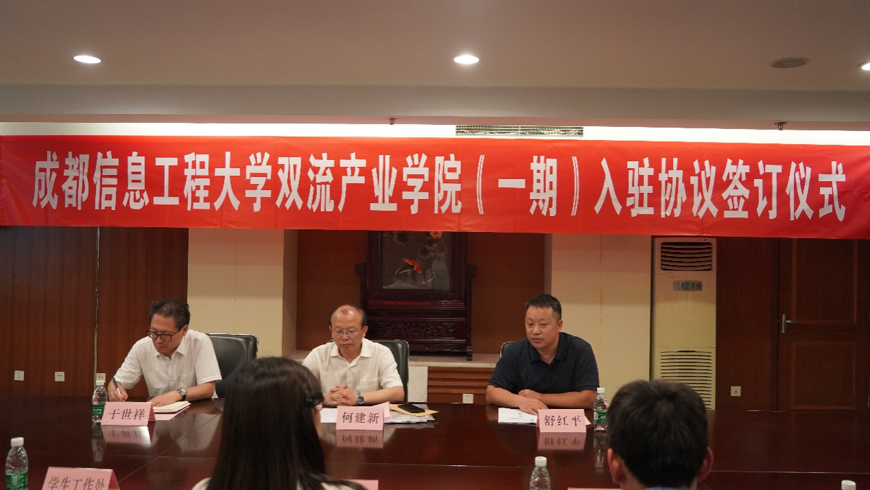 【本网讯】为贯彻落实党的二十大精神、加强产学研深度融合,7月11日下午,悟空官方网站双流产业学院(一期)入驻协议签订仪式在我校举行,学校校长何建新参会,仪式由副校长舒红平主持。