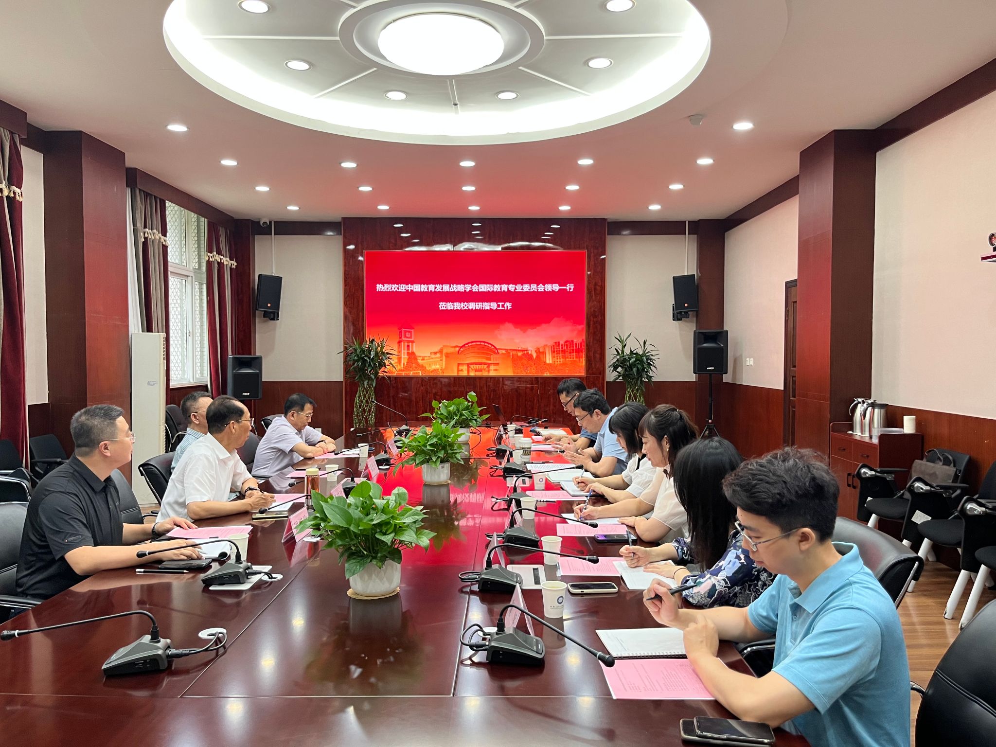 【本网讯】7月7日,中国教育发展战略学会常务理事兼国际教育专业委员会秘书长董松寿,国家留学基金管理委员会原副秘书长王胜刚,教育部留学服务中心原副主任徐培祥,普瑞教育集团董事长周相均一行到访我校并进行调研交流。学校副校长吴锡,国际交流与合作处、教务处负责人,大气科学学院、管理学院、软件工程学院教师代表参加了此次会议。会议由许源平主持。