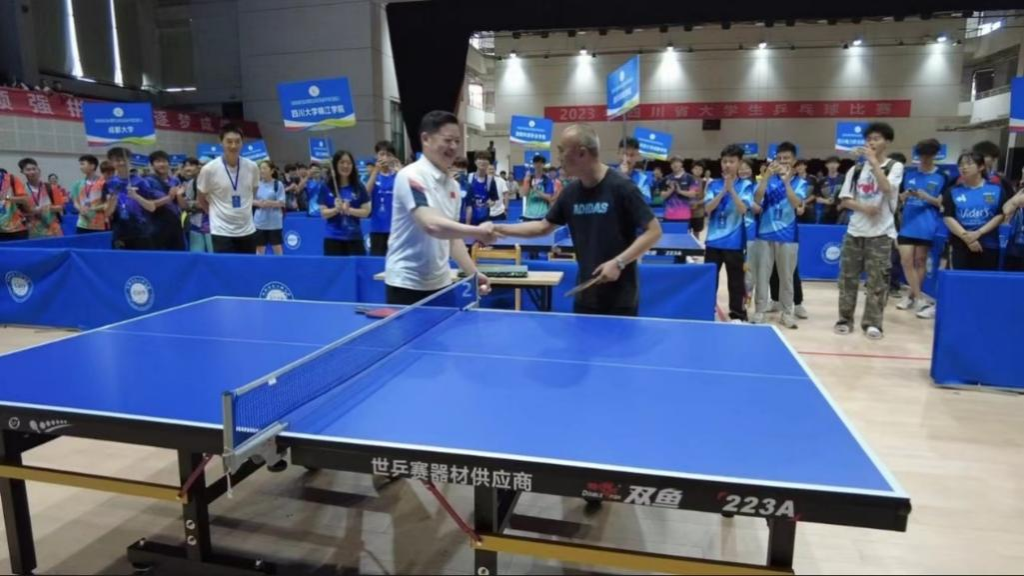 【本网讯】由四川省教育厅主办,四川省大学生体育协会执行,我校承办的2023年四川省大学生乒乓球比赛,于6月9日在我校航空港校区体育馆拉开帷幕,比赛将于6月11日结束。四川省教育厅体卫艺处处长赖英莉,省纪委监委驻校纪检监察组组长、学校党委副书记、纪委书记雷超,四川省大学生体育协会副会长文烨,四川省大学生体育协会竞训部部长吕志刚,本届比赛监督原乒乓球国家队领队、四川省乒羽管理中心主任代天云,乒乓球奥运冠军、四川省乒协会副主席、西华大学乒乓球队总教练陈龙灿,比赛技术代表、乒乓球国际级裁判杜力平,比赛裁判长、西昌学院体育学院副院长郎朝春出席了开幕式。开幕式由我校体育部主任程艺主持。