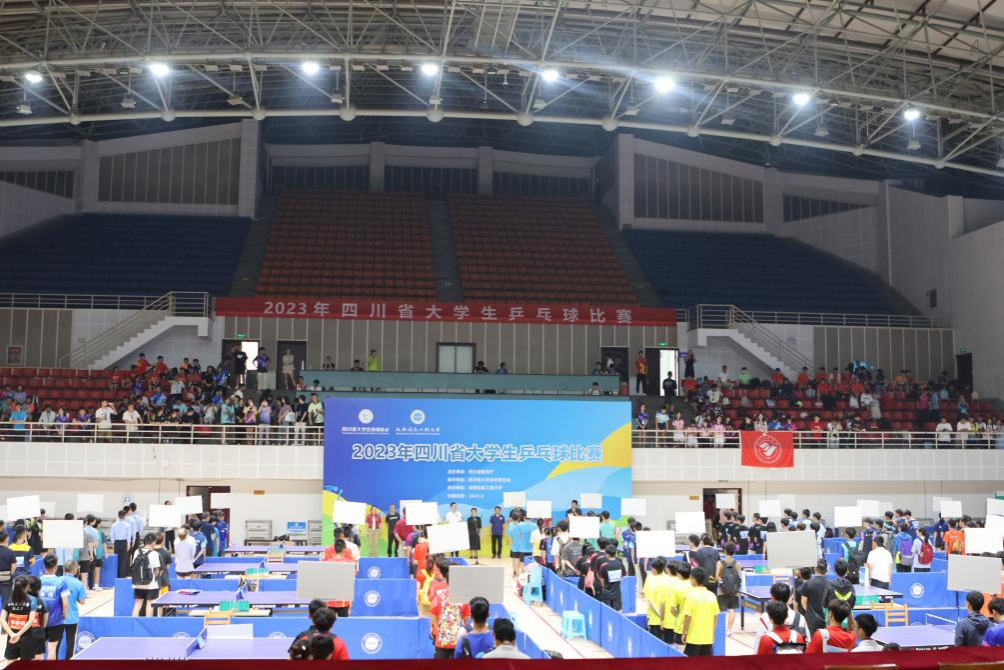 雷超在致辞中,代表学校对嘉宾的到来致以最热烈的欢迎,对支持帮助学校发展的各位领导、精心筹备本次比赛的裁判及保障团队致以最诚挚的感谢。他谈到,此次大学生乒乓球比赛是贯彻落实党的二十大精神,践行全面加强新时代学校体育工作的教育实践活动,也是爱成都、迎大运的校园体育活动。四川省教育厅、四川省大学生体育协会把这次比赛的承办任务交给我校,既是对学校体育工作的充分肯定,也是对学校不断改进体育工作,寻求高质量发展的鞭策和鼓励。学校将竭诚做好赛事的各项服务和组织工作,与各单位密切协作,尽全力办好本次比赛。举办此次比赛将进一步提升高校乒乓球运动的赛事举办能力和水平,加强校际交流合作,促进学校体育和群众体育的健康发展,为“健康中国”和“体育强国”建设做出积极贡献。